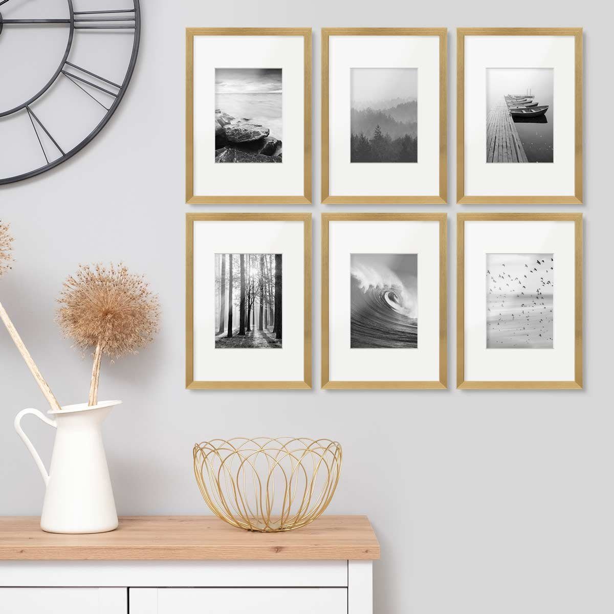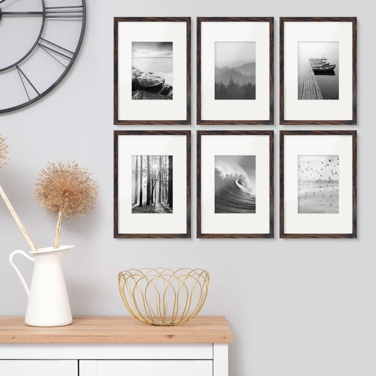 6x MDF-Bilderrahmen mit Acrylglasscheibe je 21x30 cm / Außenmaß: 23x32 cm
