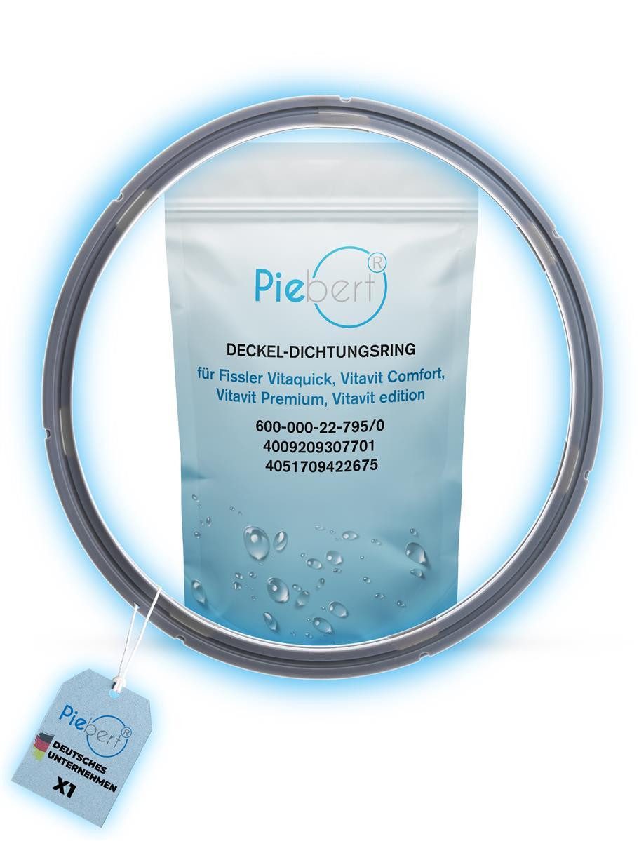 Piebert Dichtung 39156 22cm für Fissler Vitaquick, Vitavit Comfort, Vitavit Premium, Vitavit edition Schnellkochtöpfe, Deckel-Dichtungsring, grau, Silikon, 22cm Innendurchmesser, 24,5cm Außendurchmesser, baugleich zu 600-000-22-795/0
