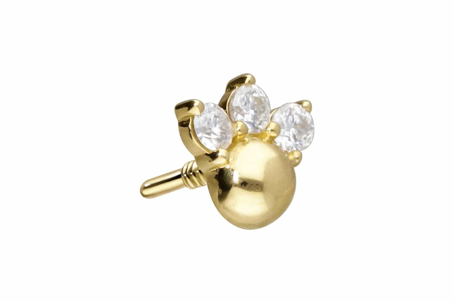 PIERCINGLINE Piercing-Set 14 Karat Gold Schraubaufsatz mit Außengewinde 3 MOISSANITE + KUGEL (Schraub-Aufsätze, 1-tlg)