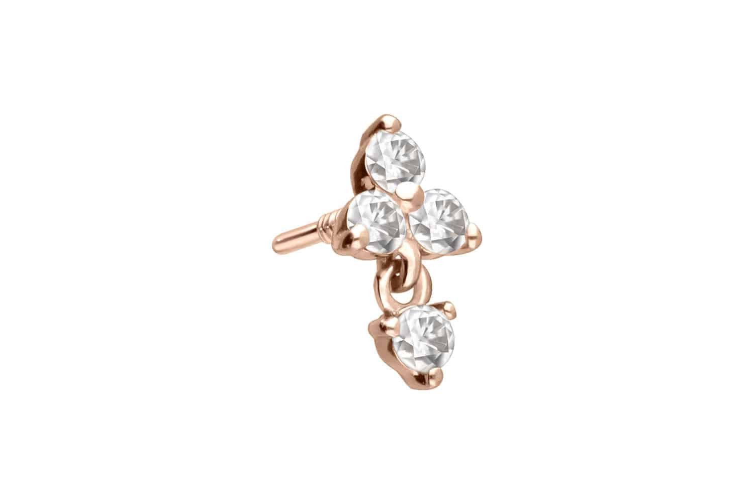 Piercing-Set 14 Karat Gold Schraubaufsatz mit Außengewinde MOISSANIT-BLUME +
