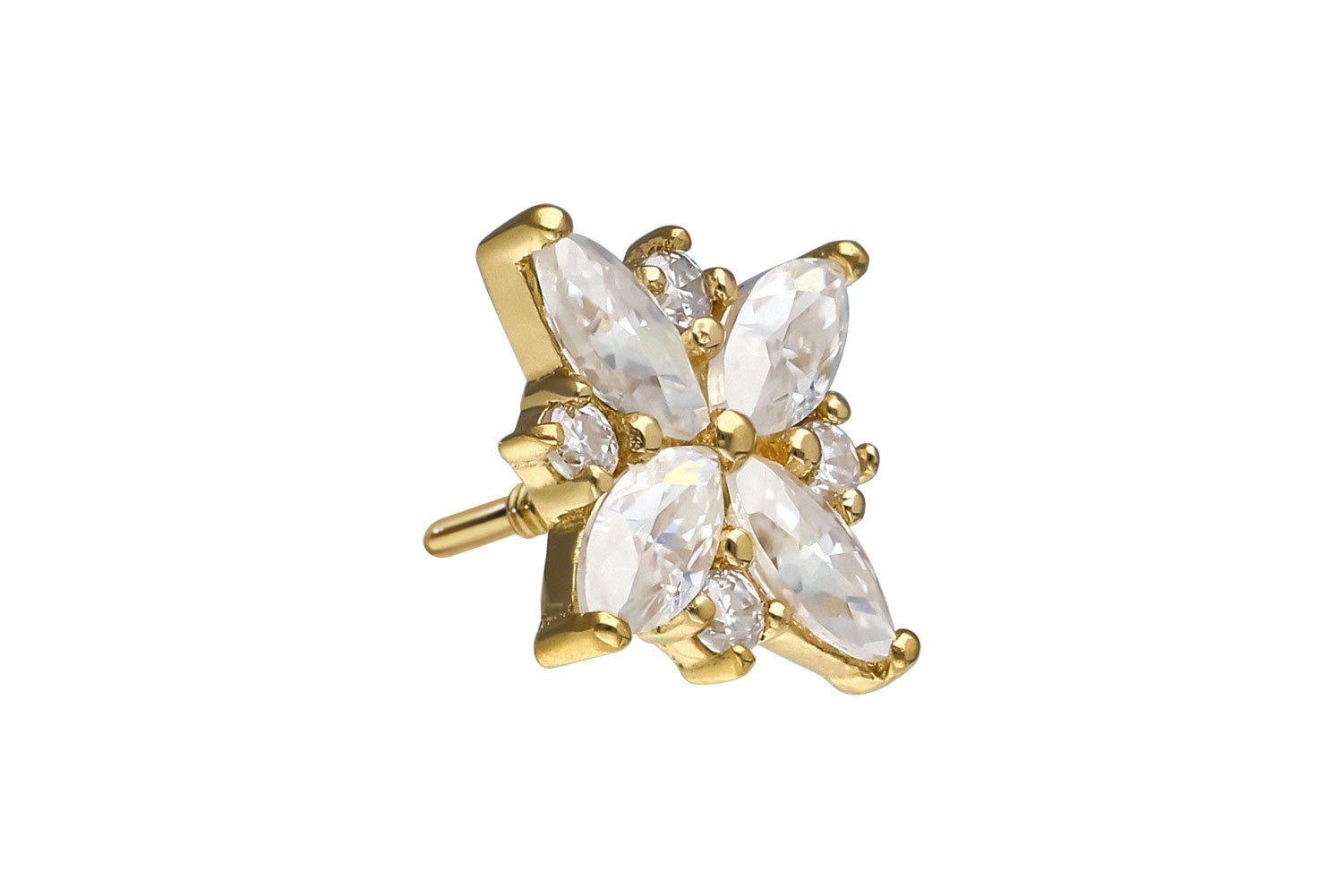 Lieferumfang: 14 Karat Gold Schraubaufsatz mit Außengewinde MOISSANIT-BLUME / 1 Stück (OHNE Labret - muss separat dazu bestellt werden)
