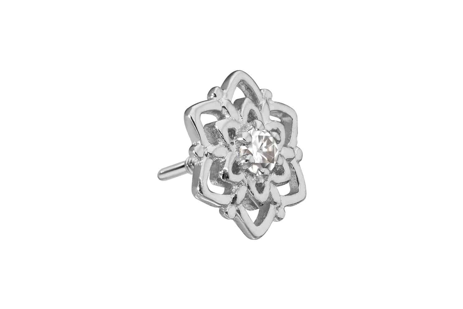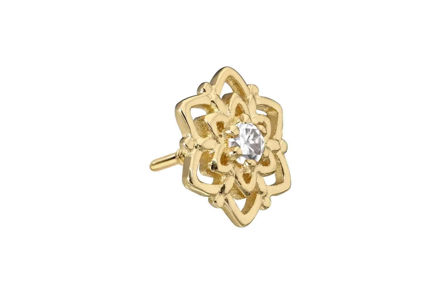 Lieferumfang: 14 Karat Gold Schraubaufsatz mit Außengewinde MOISSANIT + BLUME / 1 Stück (OHNE Labret - muss separat dazu bestellt werden)
