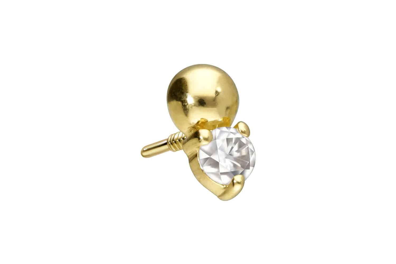 Piercing-Set 14 Karat Gold Schraubaufsatz mit Außengewinde MOISSANIT + KUGEL