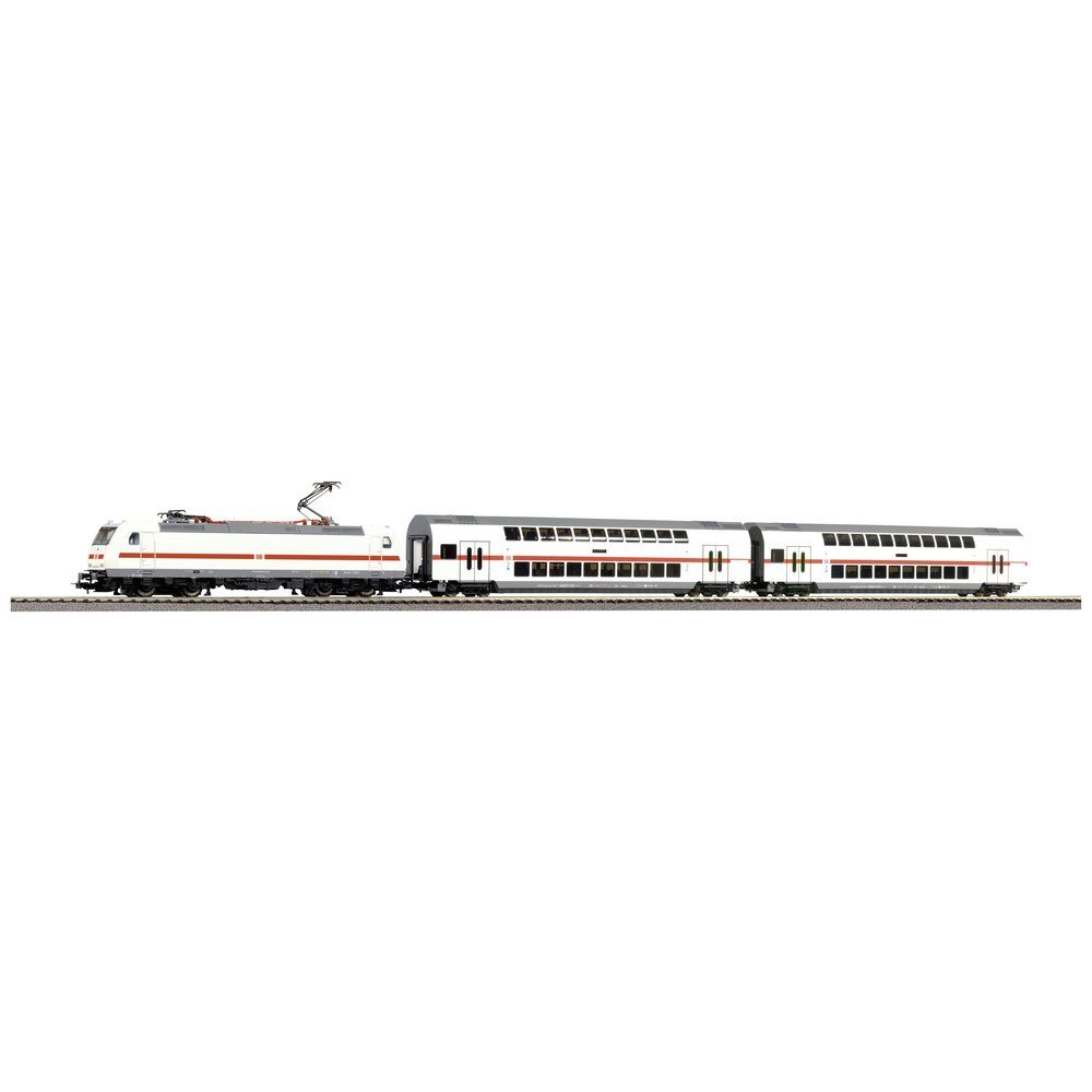 Das Set enthält eine E-Lok der BR 146 und 2 Doppelstockwagen sowie ein Oval mit PIKO A-Gleis mit Bettung