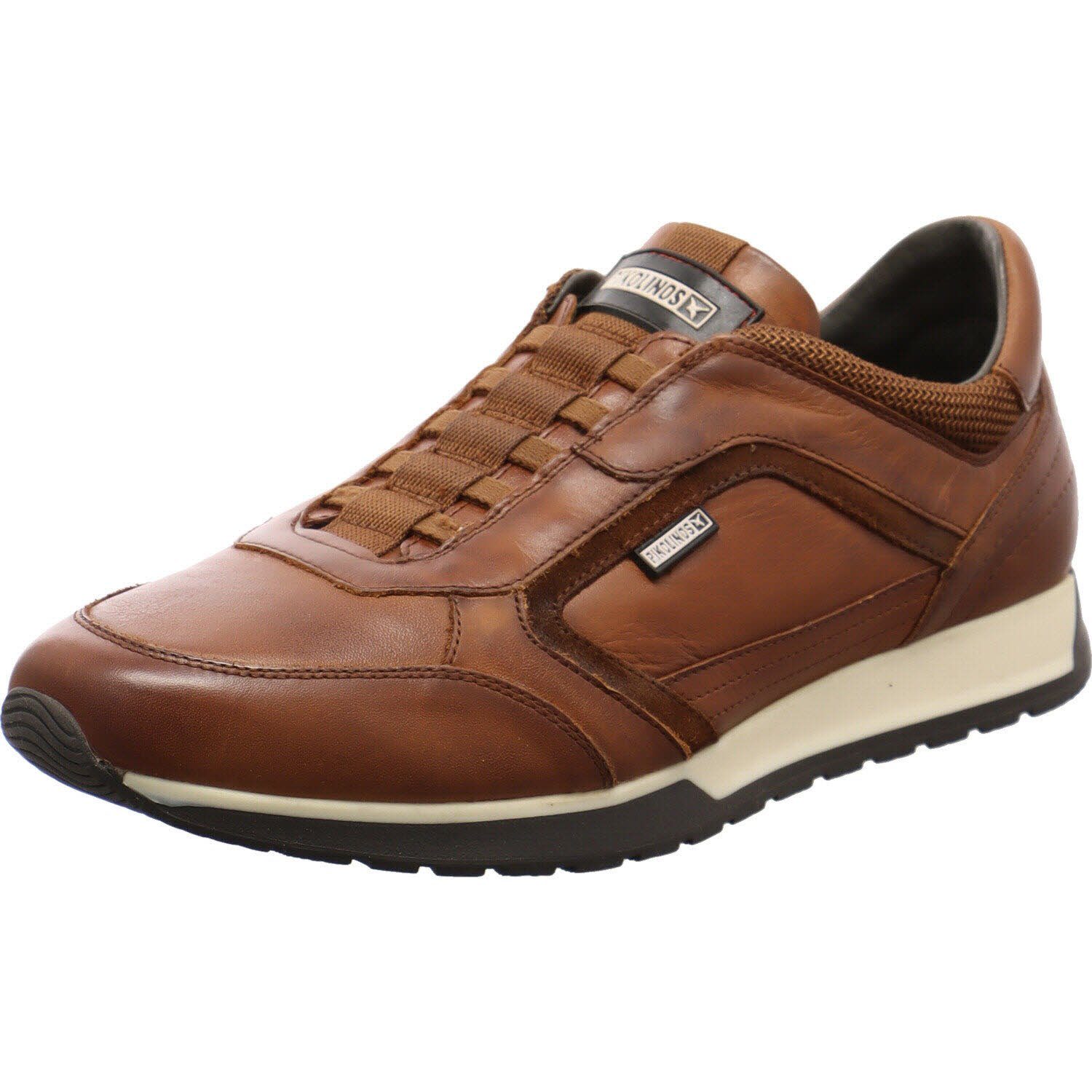 Der Cambil aus dem Hause Pikolinos ist ein stylischer Herren Sneaker im angesagten Look. Ausgewähltes Obermaterial aus hochwertigem Echtleder in Braun wurde mit einem Einsatz aus Textil am Schaft und schicken Nähten versehen, die dem Schuh seinen besonderen Look verleihen. Die softe Polsterung und das weiche Wechselfußbett aus Leder maximieren den Tragekomfort. Der Aufnäher mit der Markenaufschrift an der Zunge ist ein tolles Detail, welches das Design des Schuhs gekonnt abrundet. Einen komfortablen Einstieg gewährleistet die praktische Gummischnürung und die profilierte Laufsohle in Weiß bietet hervorragenden Grip auf allen Untergründen und gibt dem Schuh den typischen Sneaker Look.