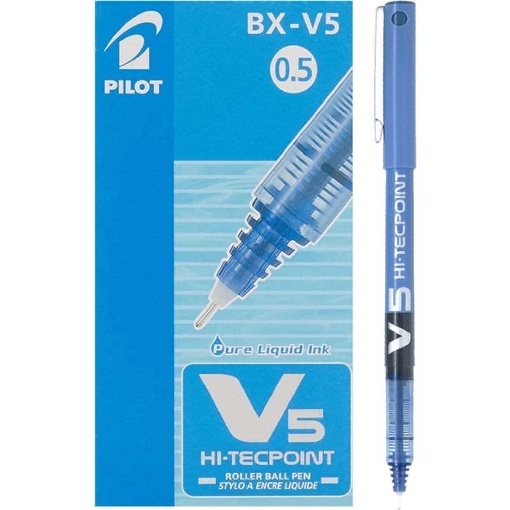 Gehen Sie zurück ins Büro, ohne Details zu vergessen: Kaufen Sie Kugelschreiber mit Flüssigtinte Pilot Roller V-5 Blau 12 Stück und seien Sie der Neid Ihrer Kollegen!Farbe: BlauDicke: 0,3 mmMerkmale: Von der SchulterStück: 12 StückTinte: Blau