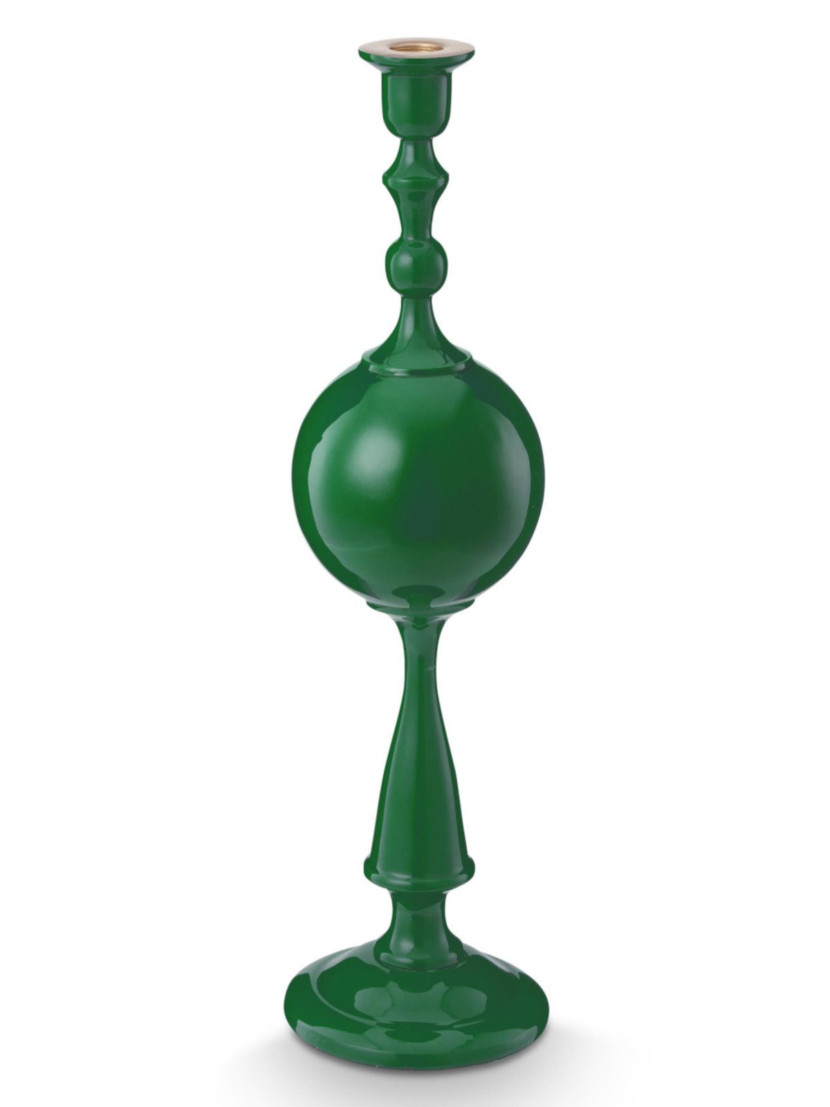 Gefertigt aus hochwertigem Glas, vereint der Kerzenhalter eine edle, glänzende Oberfläche mit feinen Details und harmonischen Proportionen. Die satte grüne Farbgebung verleiht ihm eine warme, moderne Ausstrahlung und sorgt für eine stimmungsvolle Atmosphäre – besonders in Kombination mit einer passenden Stabkerze.