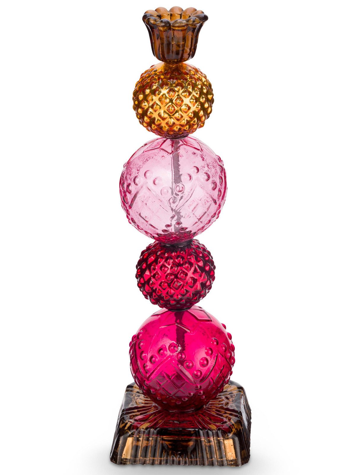Gefertigt aus Glas, überzeugt der Kerzenhalter durch seine feine Verarbeitung, den leichten Glanz und die liebevoll gestaltete Form. Mit einer Höhe von 30 cm eignet er sich ideal für Stabkerzen und bringt warmes Licht sowie eine dekorative Atmosphäre in jeden Raum.