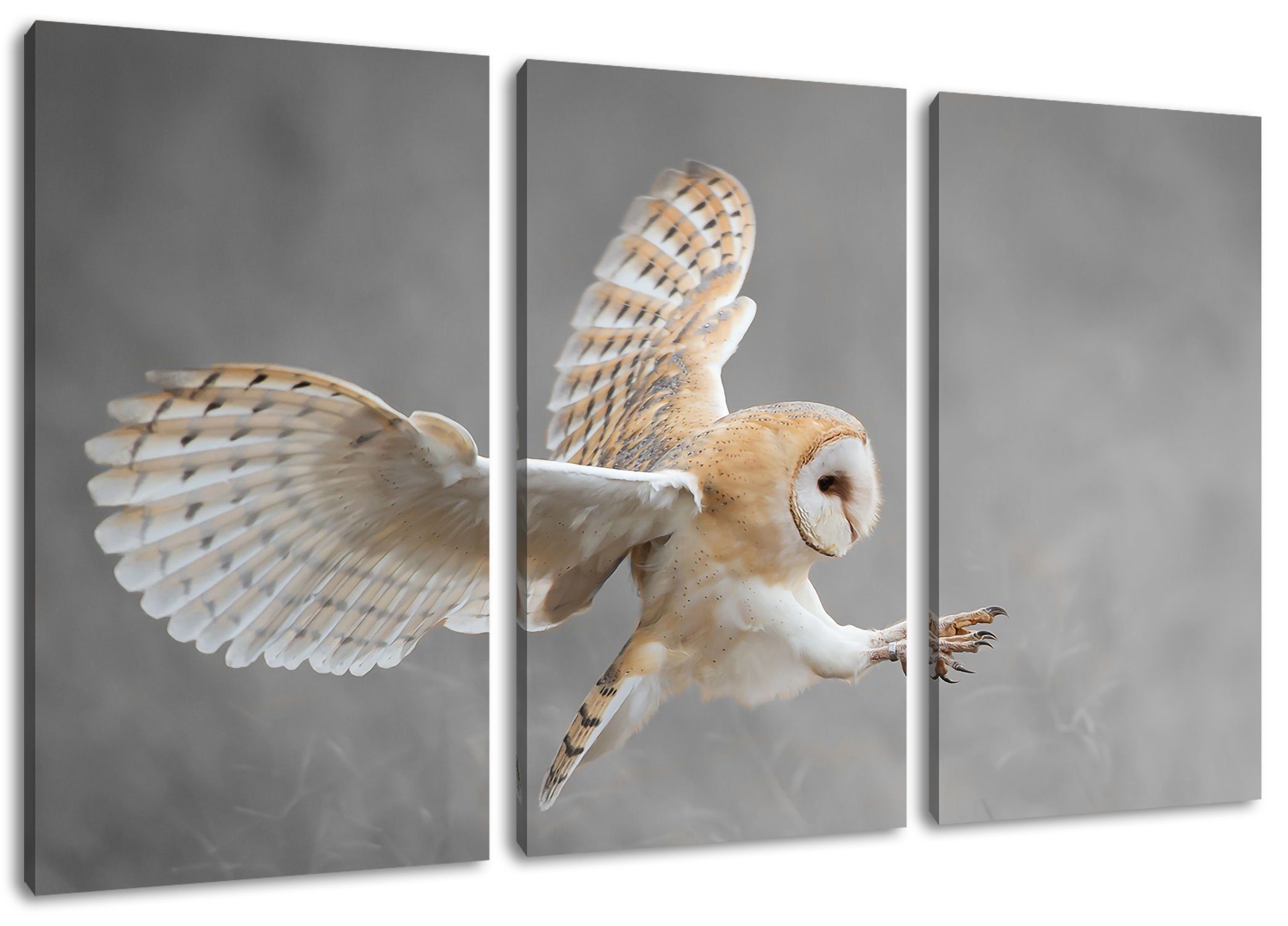 Motiv | Fliegende Weiße Eule bei der Jagd 3Teiler (120x80cm) |
