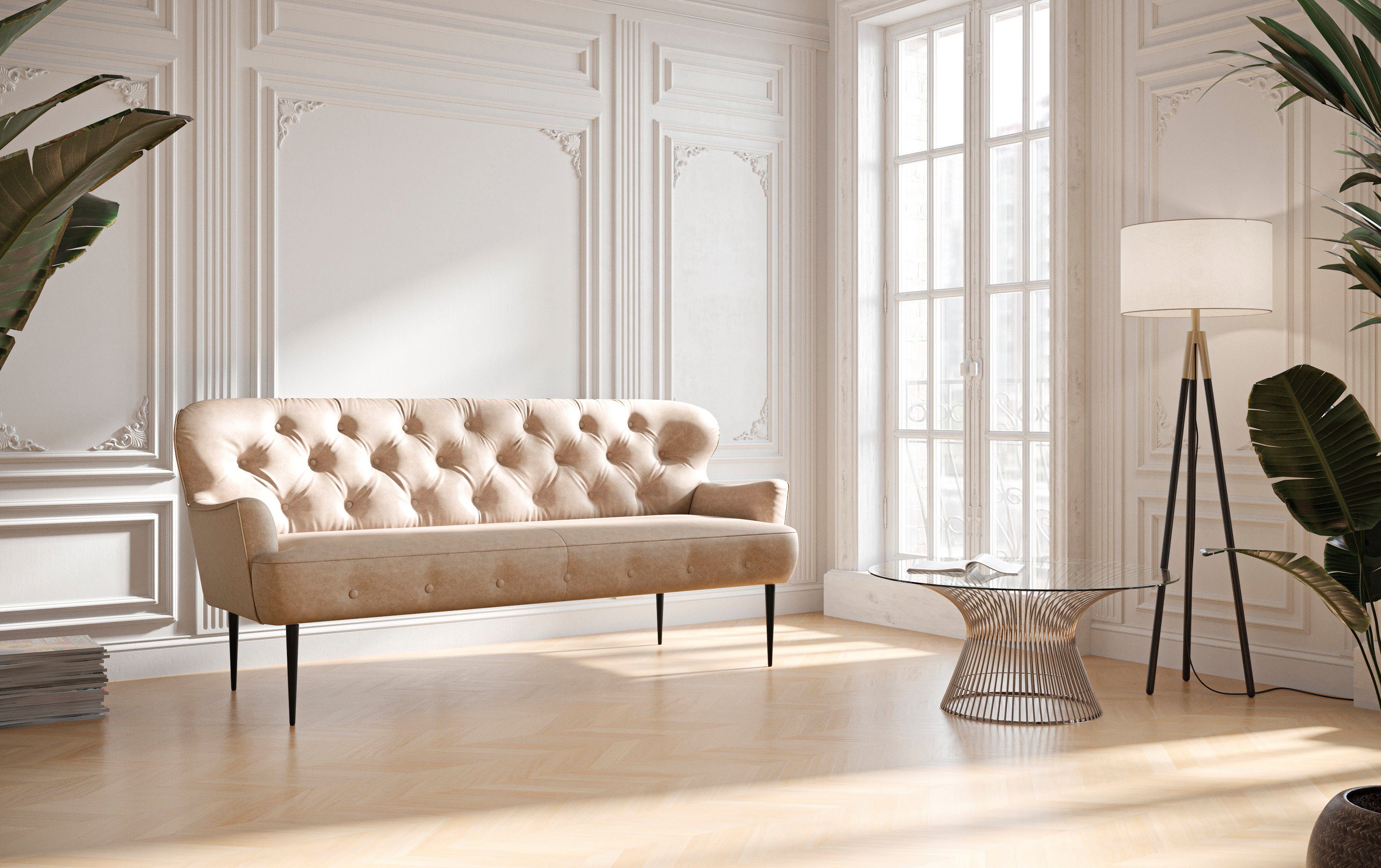 Eine dauerhaft elastische und komfortable Sitzfläche — das bekommst du bei diesem 3-Sitzer »Amber« von Places of Style, der mit einer hochwertigen Wellenunterfederung ausgestattet ist. Belastbar ist dein neues Möbelstück bis zu 300 Kilogramm. Die atmungsaktiven Fasern der Luxus-Microfaser ALTARA NUBUCK® machen den Bezug hautfreundlich und strapazierfähig. Der feine Stoff überzeugt auch mit seinem weichen und anschmiegsamen Griff. Aus Liebe zum Detail wurde dieses Modell von Hand angefertigt.
