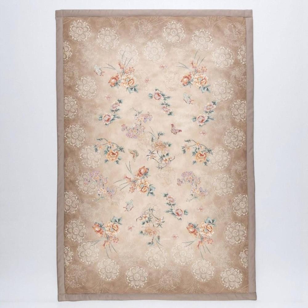 Zarte Blütenmotive und Schmetterlinge erinnern an fernöstliche Eleganz und verleihen dem Plaid seine besondere Note.