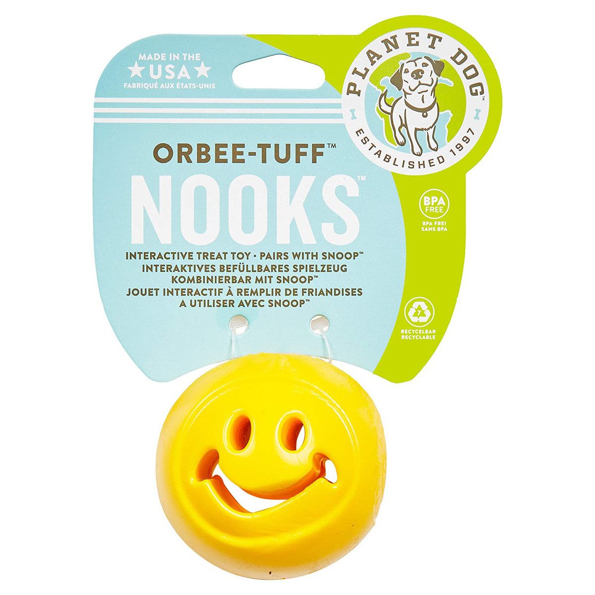 Orbee-Tuff NooksTM bietet ein ganz neues Ballvergnügen. Jede verrückte Form lässt sich mit Leckereien befüllen und für langanhaltenden Spaß auch einfrieren. Mit 6,5 cm eignen sie sich perfekt für einen Wurf mit dem Wood Chuck und passen genau in den Orbee-Tuff Snoop. Orbee-tuff ist eine ausgezeichnete Serie von geformten Spielzeugen mit unübertroffener Biegsam- sowie Festigkeit, welche für ein tolles Kauerlebnis sorgen. Planet Dog bietet schöne Farben, verrückte Designs und funktionale Lösungen. Jedes Produkt schwimmt. Jedes riecht minzig-frisch. Und ganz wichtig: sie sind ungiftig, umweltfreundlich und unglaublich haltbar.