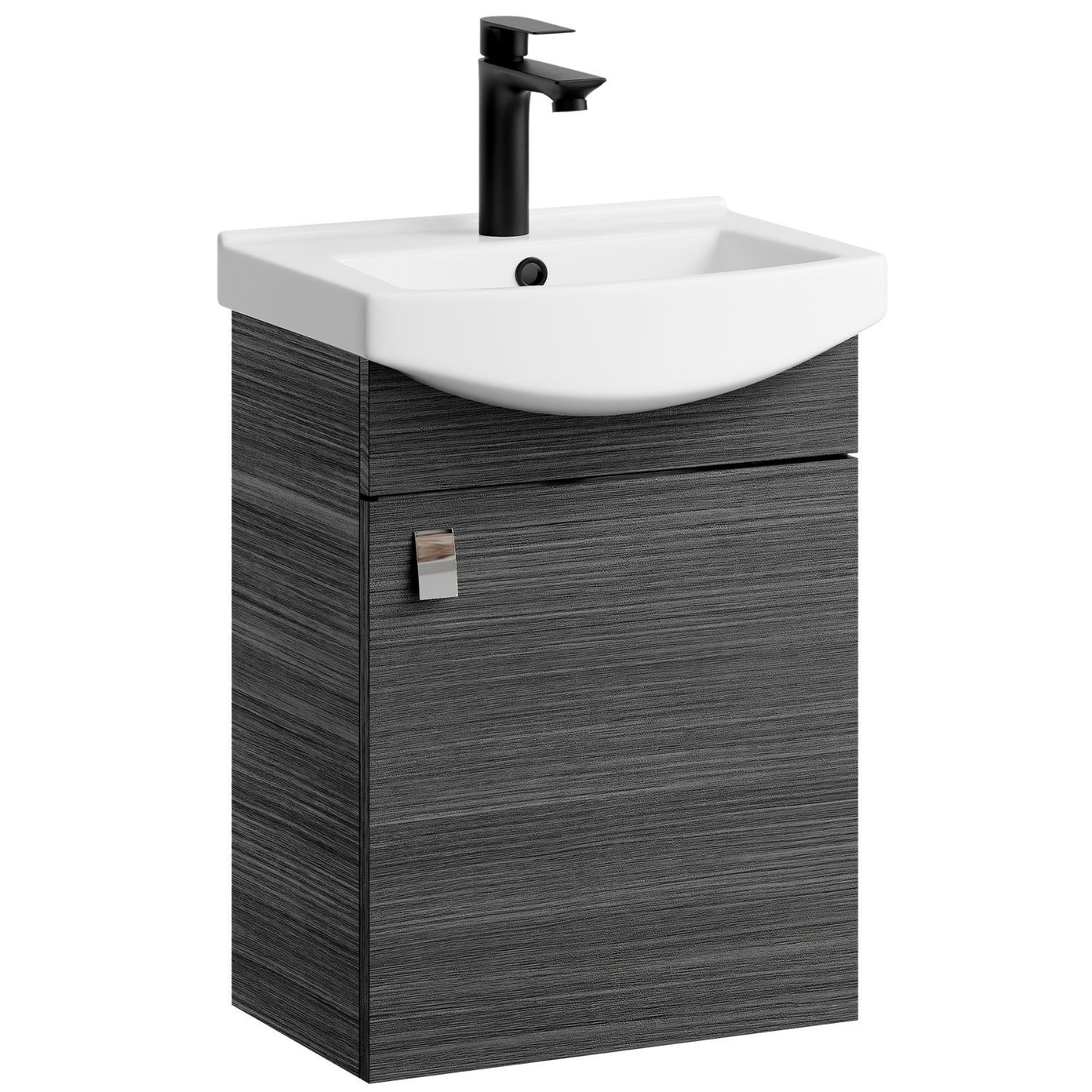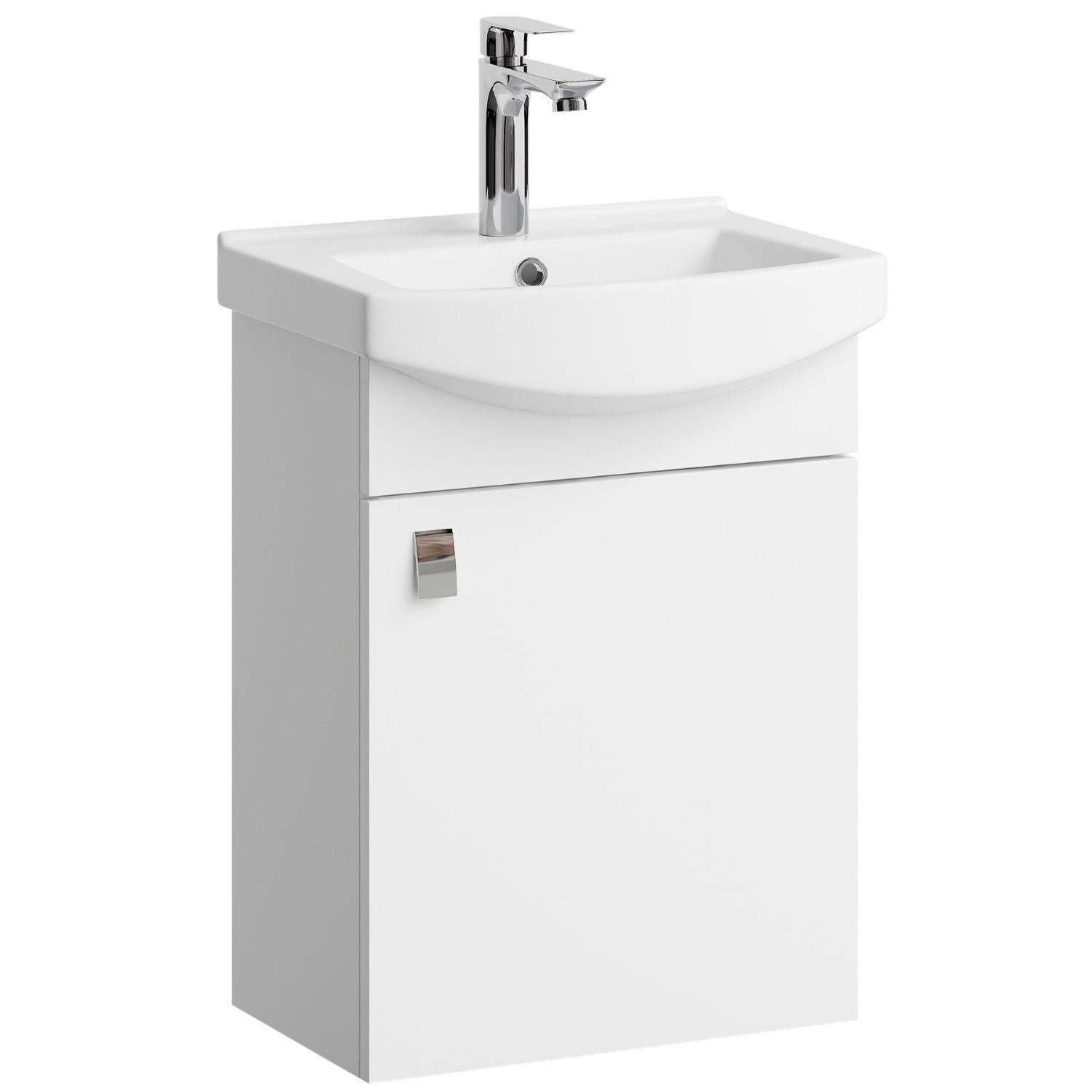 Mit einer Breite von nur 45 cm fügt sich das Set perfekt auch in kleinere Räume ein und bietet mit zwei geräumigen Fächern dennoch überraschend viel Stauraum für Ihre täglichen Badutensilien.