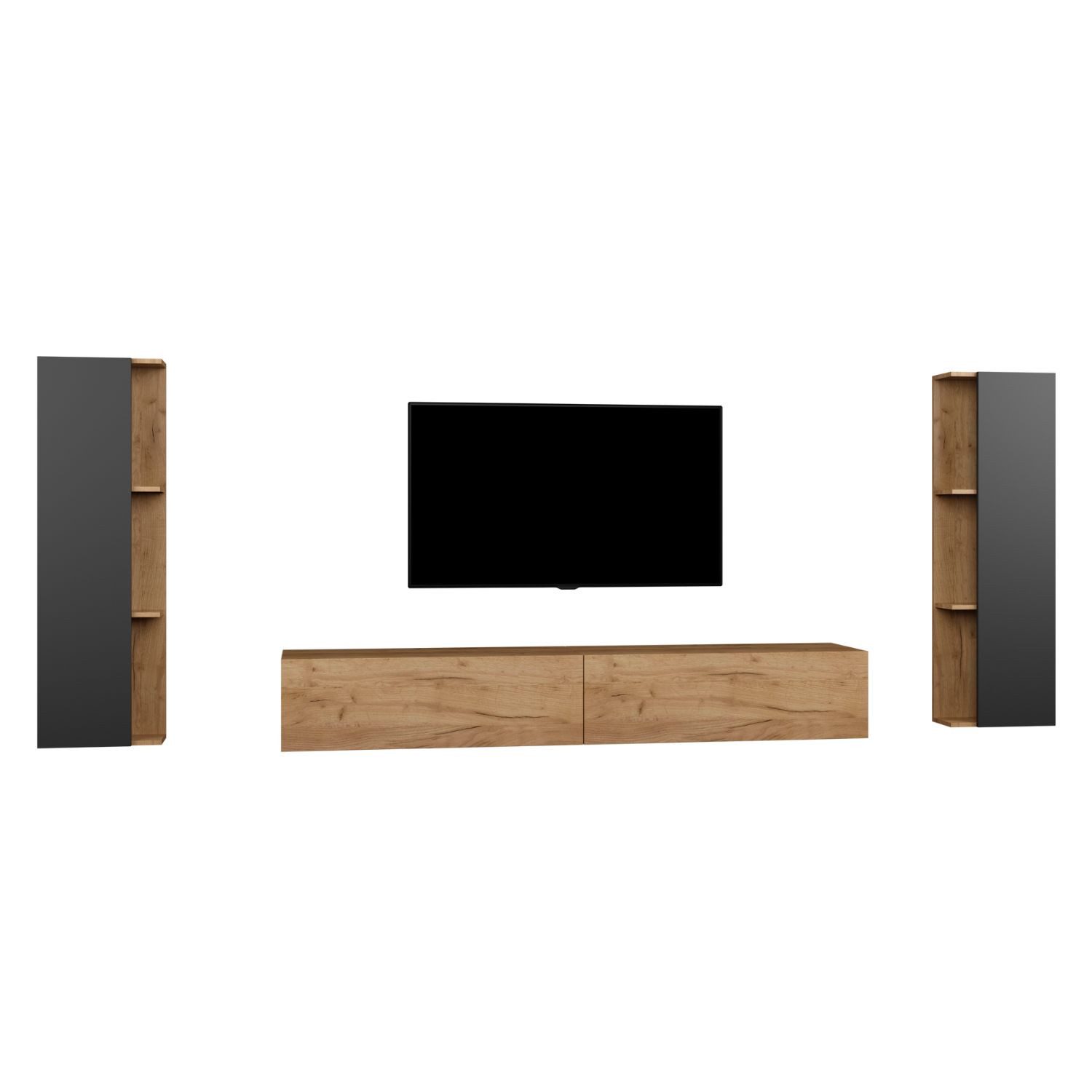 Planetmöbel TV-Schrank-Set Gold Eiche/Anthrazit – Klarer Look, smarter Stauraum an der TV Wand