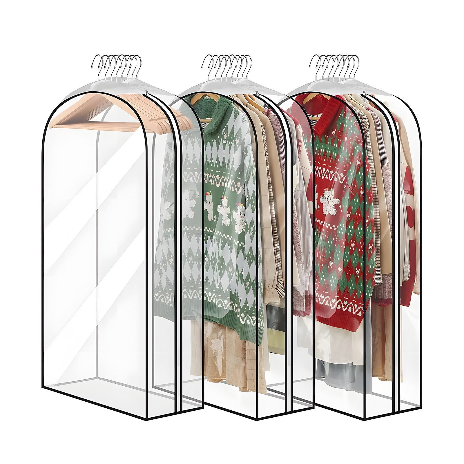 Großes Fassungsvermögen: 3er-Pack durchsichtiger Kleidersäcke, großes Fassungsvermögen: 40,8 x 24 x 10,2 Zoll, Kleidersäcke bieten ausreichend Platz für Jacken, Röcke, Wintermäntel und Kostüme und sorgen für Ordnung in Ihrem begrenzten Kleiderschrank.