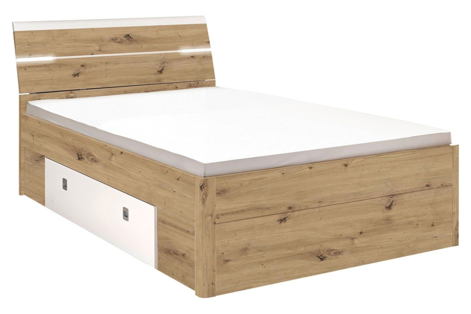 Die Bettrahmenhöhe beträgt 46 cm, und das Bettgestell wird platzsparend flach verpackt geliefert. Die Schubladen bieten praktischen Stauraum für Bettwäsche oder andere persönliche Gegenstände. Die Kombination aus dem warmen Holzdekor und dem zeitlosen Weiß macht das Bettgestell MARS zu einem attraktiven Blickfang in Ihrem Schlafzimmer. Der Versand erfolgt per Spedition.