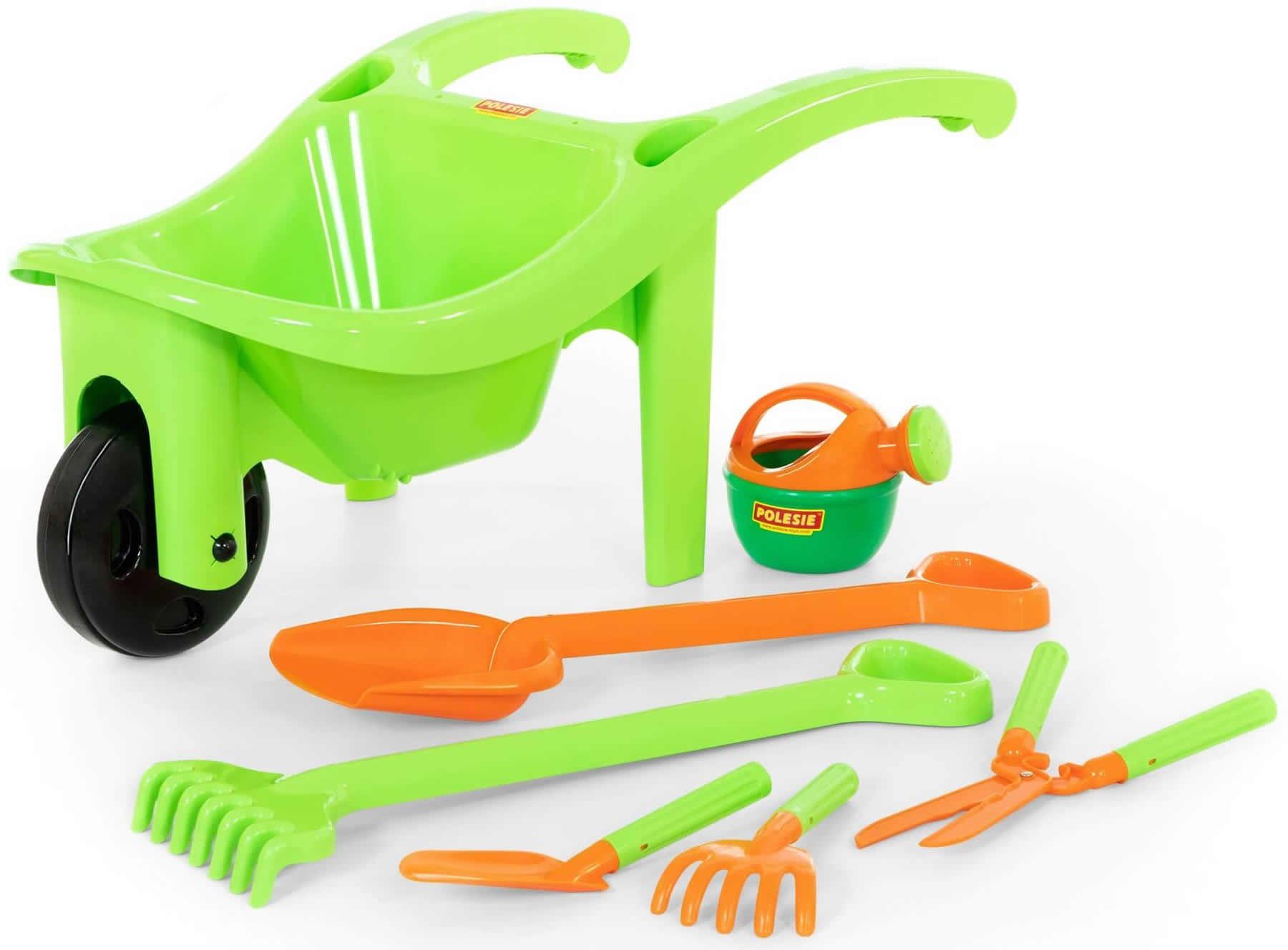 Jetzt ist Gartenarbeit angesagt!!! Auf geht's in den Garten - ob Hecke schneiden oder Blumen gießen - kleine Gärtnerinnen und Gärtner haben mit diesem 7-teiligen Schubkarren-Set die Grundausstattung für ihre Gartenarbeit. Ein MUSS für jeden Nachwuchsgärtner!