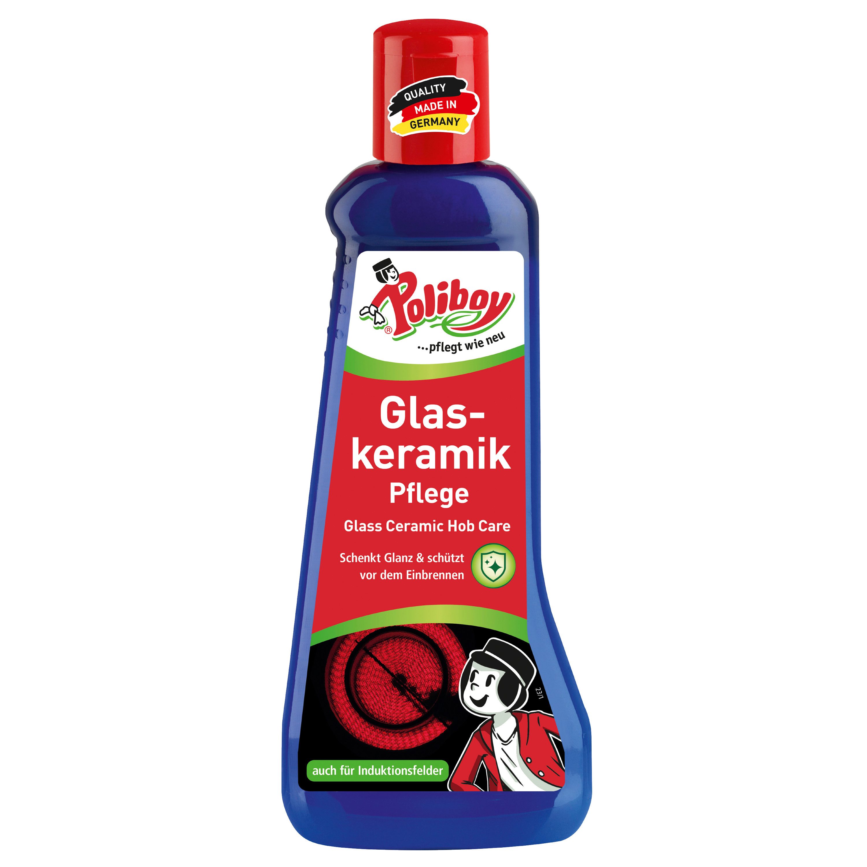 Zur Reinigung und Pflege ist das Spezialprodukt POLIBOY Glaskeramik Pflege unverzichtbar. Bei regelmäßiger Anwendung verhindert eine Schutzschicht, die durch ein spezielles Silikonöl erreicht wird, das feste Anhaften von Kochrückständen und die damit verbundene Schädigung der Glaskeramik-Kochfelder. Daneben erzeugt ein Wachs eine schöne, glänzende Oberfläche, die leicht poliert werden kann und vor schneller Verschmutzung schützt.