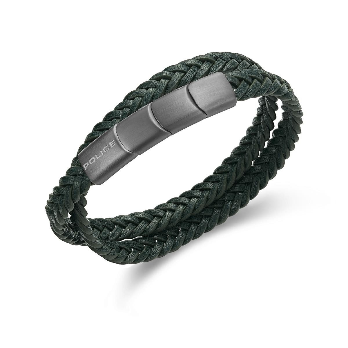 Rebellisches Flair mit dem Braid-Armband von POLICE. Das einzigartige Double-Wrap-Design mit einem flachen, dunkelgrünen Lederband verleiht Ihrem Alltagslook eine trendige Richtung. Der Verschluss mit IP-Metall-Beschichtung und dem kultigen POLICE-Schriftzug verleiht dem Armband einen luxuriösen Touch. Es ist die perfekte Mischung aus tougher Haltung und ausgefeiltem Stil.