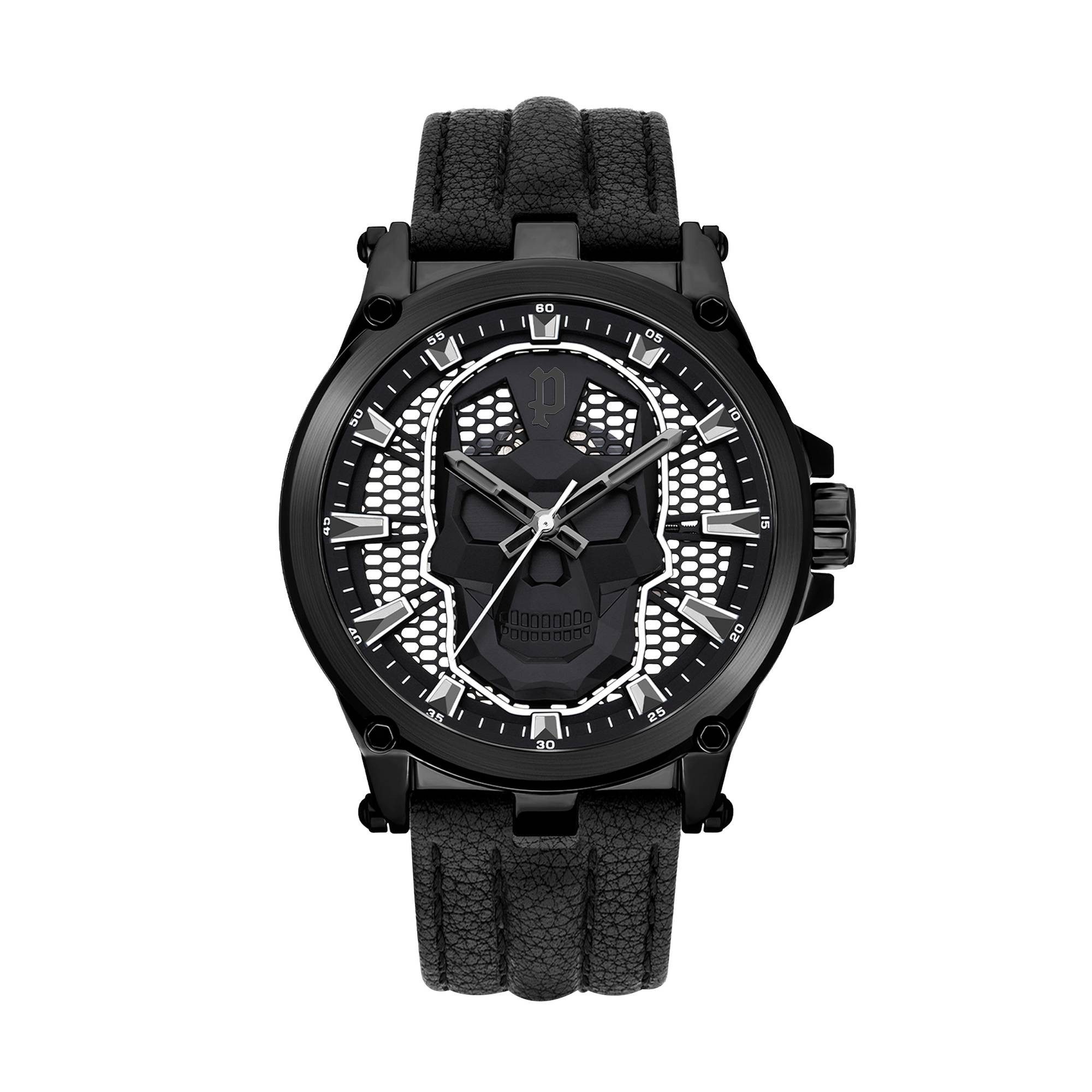 Die Vertex von Police verkörpert die furchtlose Haltung von Männern mit einer gewissen Neuartigkeit. Das saubere Design wird durch das Totenkopfmotiv, das für "Selbstdarstellung" steht, zu einem rebellischen Statement. Все industriellen Details vereinen sich und brechen mit dem konventionellen Design. Armbanduhrbreite: 24 mm, Gehäusehöhe: 12,5 mm, Durchmesser: 47 mm.