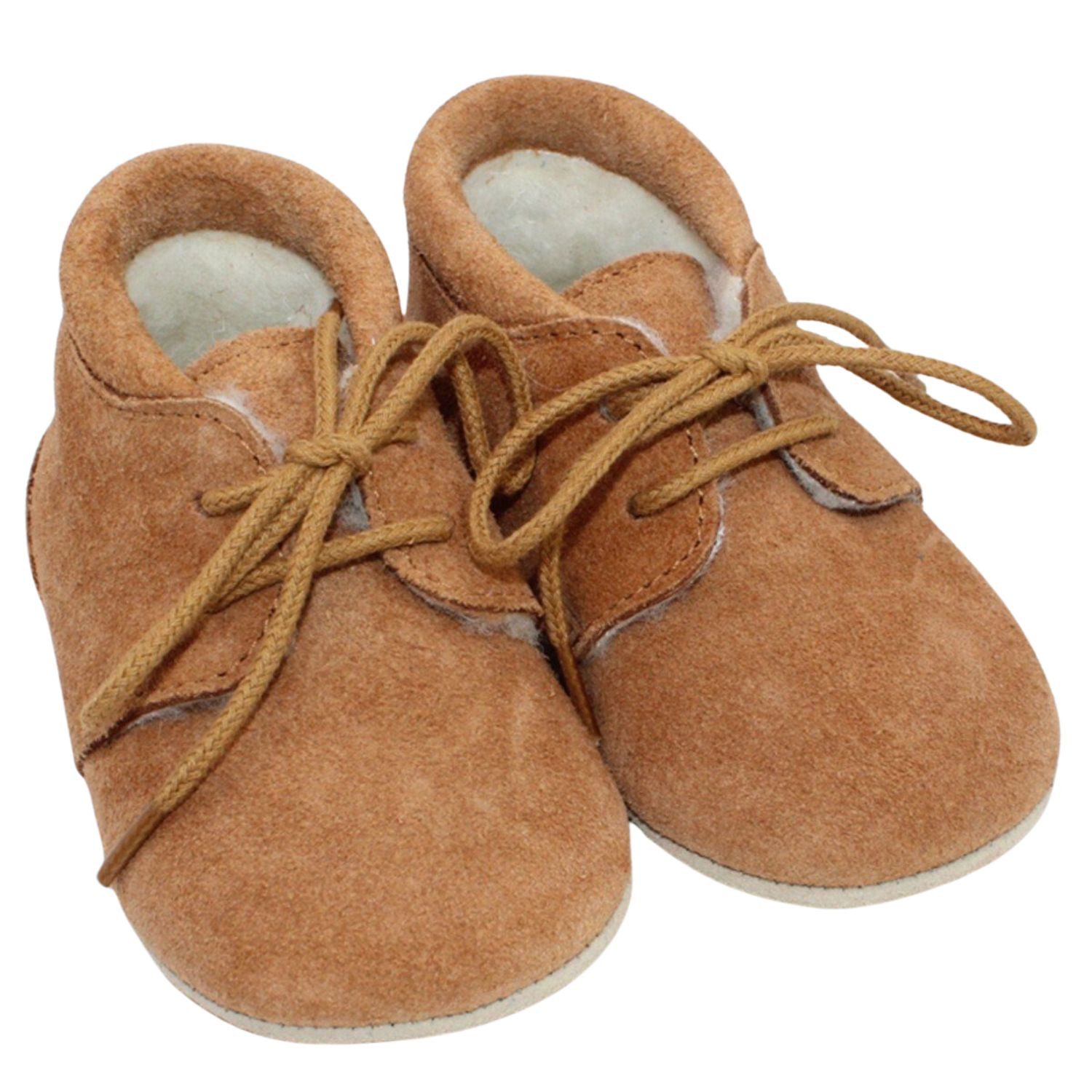 Barfußschuh für die ersten Schritte draußen • So lange wie möglich sollten Kinder am besten ohne festes Schuhwerk unterwegs sein. Gerade bei den ersten Schritten, wenn die Kleinen noch tapsig ihre Welt erkunden, können Straßenschuhe eher hinderlich sein. Eine durchgehende Gummisohle ist, auch wenn sie noch so flexibel ist, für manche manche einfach noch zu viel. Gerade beim Hochziehen, dann wieder Krabbeln und dann wieder kleine Schritte machen, brauchen die Kleinen eher eine flexible Sohle, die auch gerade im Mittelfuß eine bestmögliche Flexibilität bietet. Erst dann, wenn Kinder schon selbstständig einige Zeit laufen, sollte richtiges Schuhwerk getragen werden! Was aber können Eltern machen, wenn es draußen kühl ist und man mit den Kleinen mal eben raus möchte – auf den Spielplatz, ein paar Schritte draußen auf die Straße oder neben dem Kinderwagen mitlaufen? Einfache Lederkrabbelschuhe reichen dann oft – gerade bei kühleren Temperaturen – nicht aus. Aus diesem Grund haben wir das Modell „Porto“ entworfen. Es ist nicht für Langstrecken auf dem Asphalt konzipiert, sondern wirklich für den Einsatz zum Laufstart, um die kleinen Füße warm zu halten und zu schützen. ••• Super flexible Minimalsohle : Breite, weiche, Ledersohle mit rutschhemmendem Gummieinsatz für die ersten Schritte. Die Sohle ist aus Leder, daher kann sie natürlich auch von richtigen kleinen Läufer getragen werden, sie würde aber nicht unbedingt im Dauereinsatz auf dem Asphalt standhalten. Für Läufer empfehlen wir dann lieber unsere Primero Sohlen oder unsere Barfußsohlen. ••• Material: Wir haben uns bewußt für Velourleder (Wildleder) entschieden, weil dies noch weicher und flexibler ist, als Glattlder. Unsere Naturleder sind pflanzlich gegerbt und chromfrei.