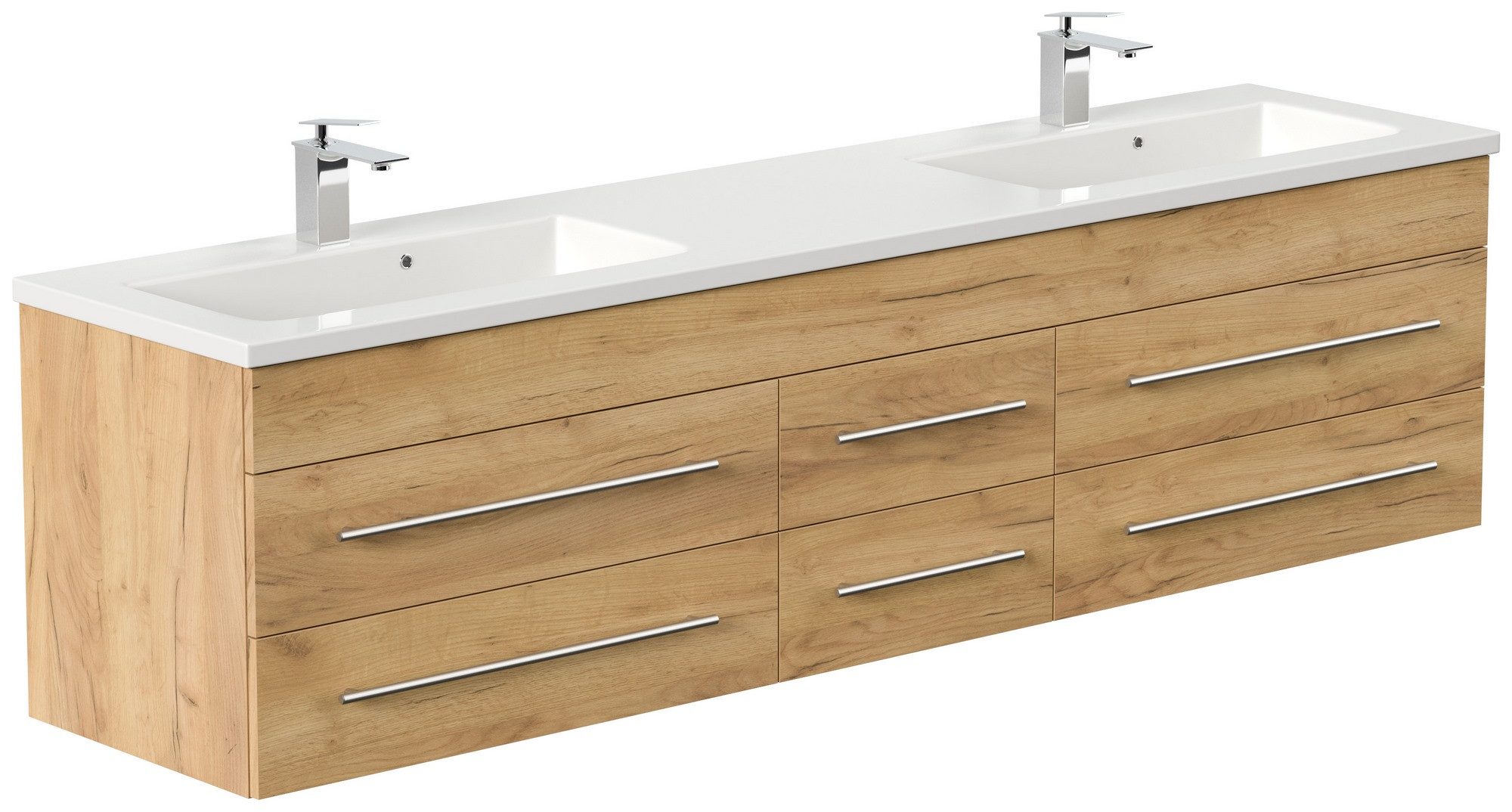Badmöbel Waschplatz Geant 200 cm Eiche Gold – Zeitloser Stil in natürlicher Optik