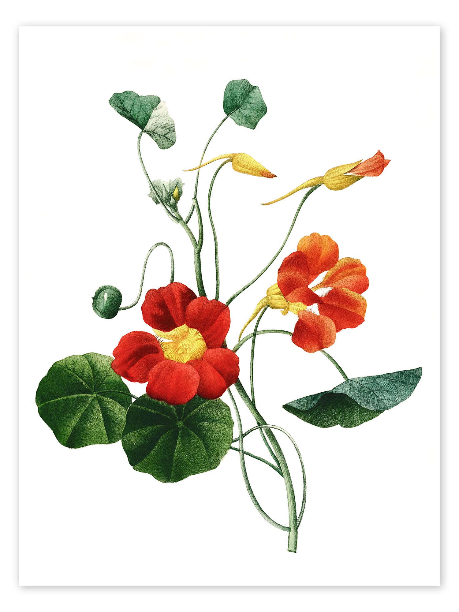 Das Poster „Kapuzinerkresse“ (675531) aus dem Меню des Kunstverlags Posterlounge wird Sie mit intensiven Farben und hervorragender Kunstdruck-Qualität begeistern. Der hochwertige, leicht glänzende Druck auf kräftigem Premiumpapier (250 g/m²) macht das Bild von Pierre Joseph Redouté zu einem echten Hingucker für Ihr Zuhause. Durch den 3 mm breiten weißen Rand, der in allen Formaten inbegriffen ist, wird das Motiv hervorgehoben und wirkt besonders edel.