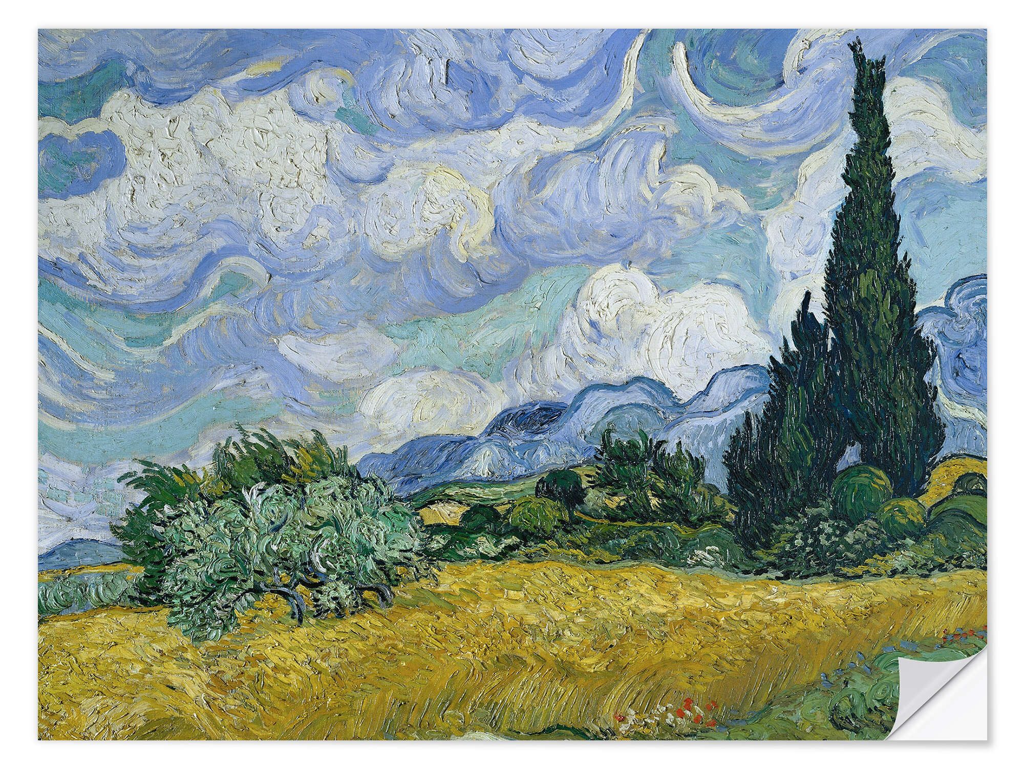 Ihr Wandsticker „Weizenfeld mit Zypressen, 1889“ (749000) von Vincent van Gogh wird eigens für Sie in der hauseigenen Kunstdruckerei des Leipziger Kunstverlages Posterlounge hergestellt. Mit diesem farbenprächtigen und hochauflösenden Druck auf selbstklebender Folie (170 g/m²) können Sie den Look Ihrer Einrichtung in Nullkommanichts verändern, ohne zu Bohren oder zu Hämmern.