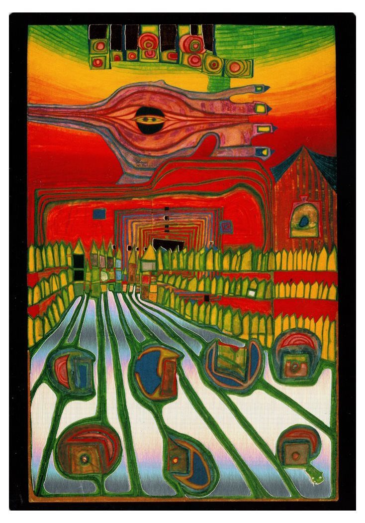 Kunstkarte Hundertwasser "Chateau des Survivants de Laszlo mit Silberstrasse"