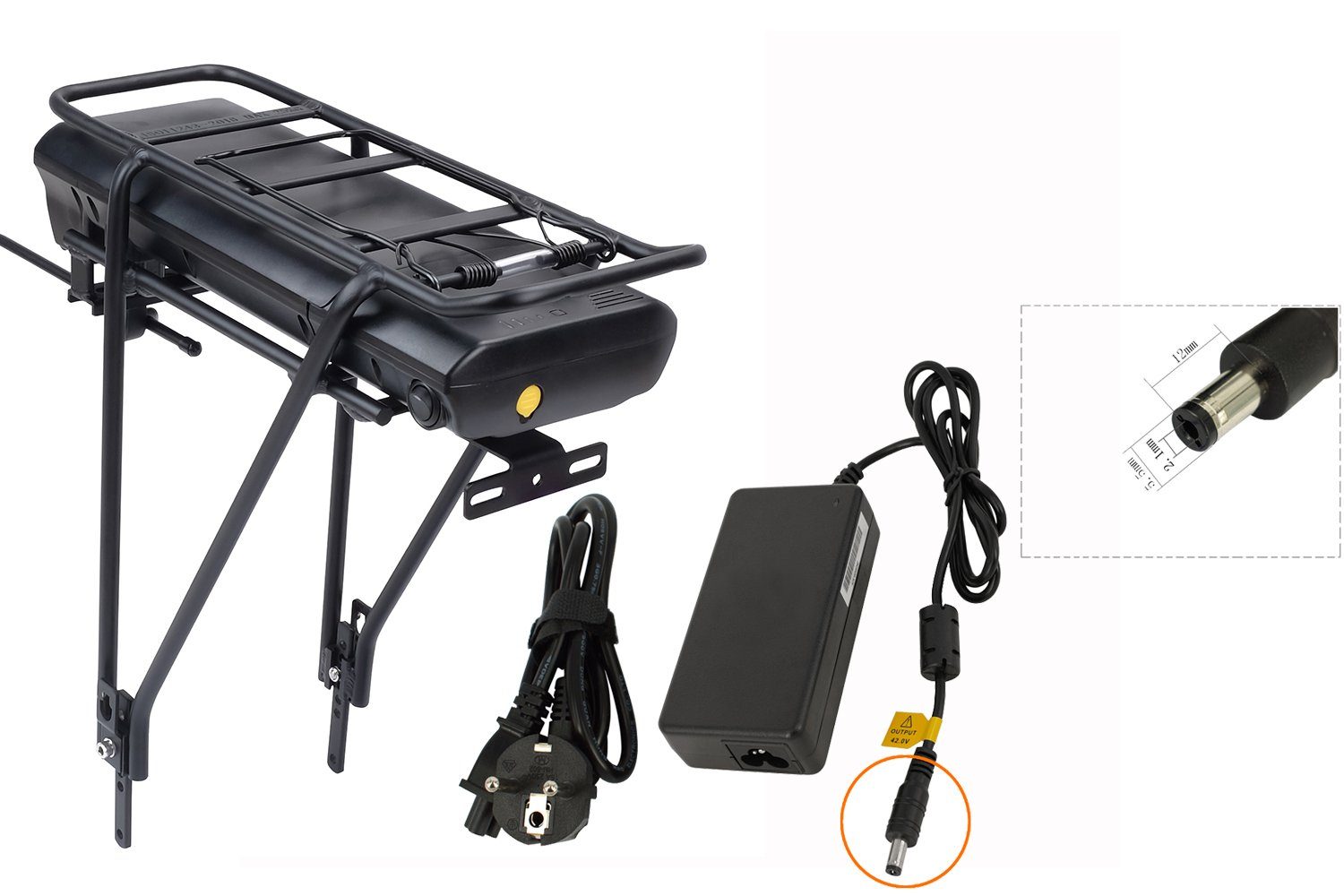 Bezeichnung | Gepäckträger Umbausatz schwarz 14Ah mit Batteriehalterung und Fahrradgepäckträgersitz und Ladegerät |