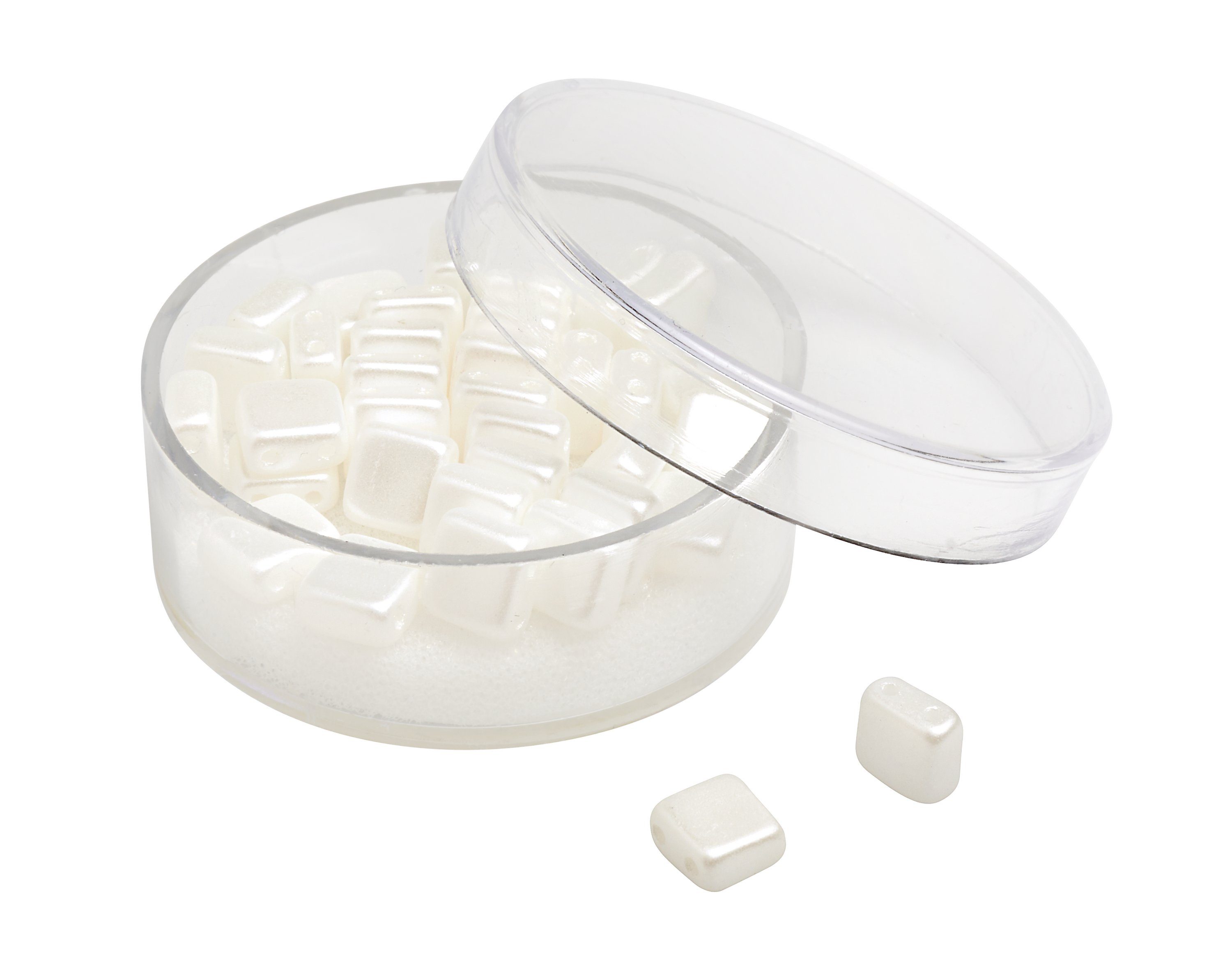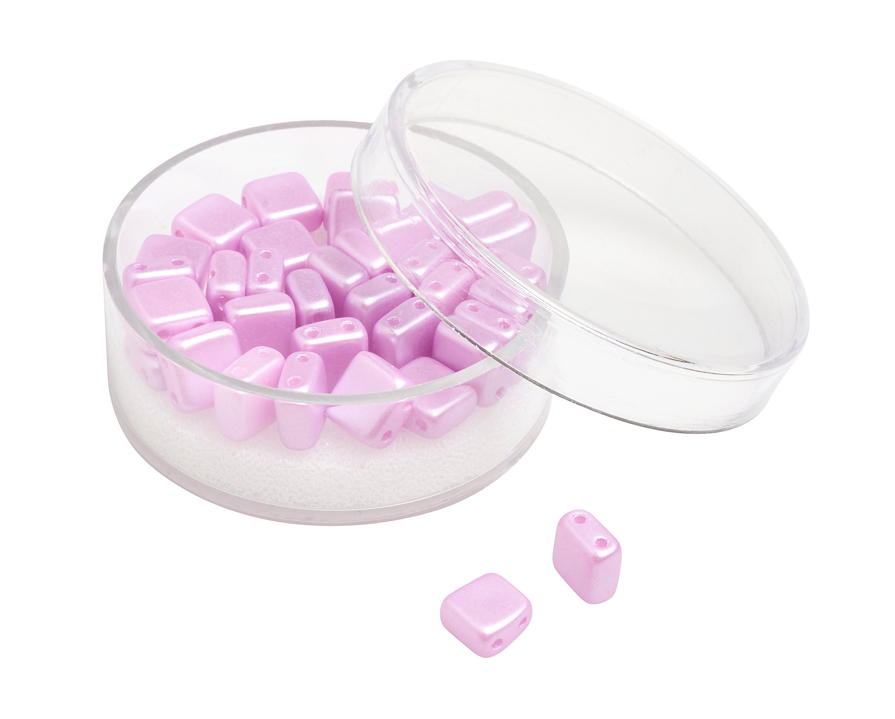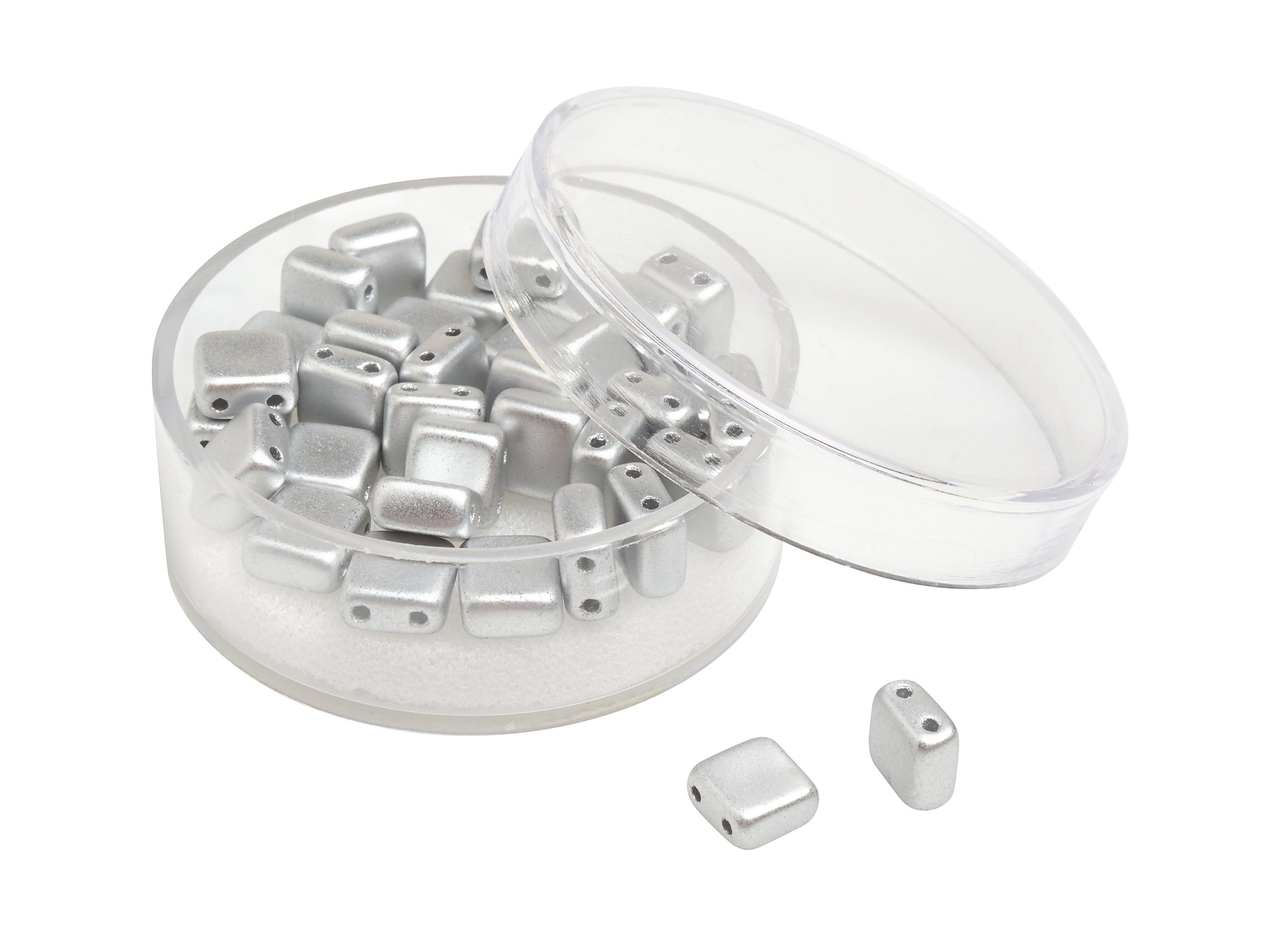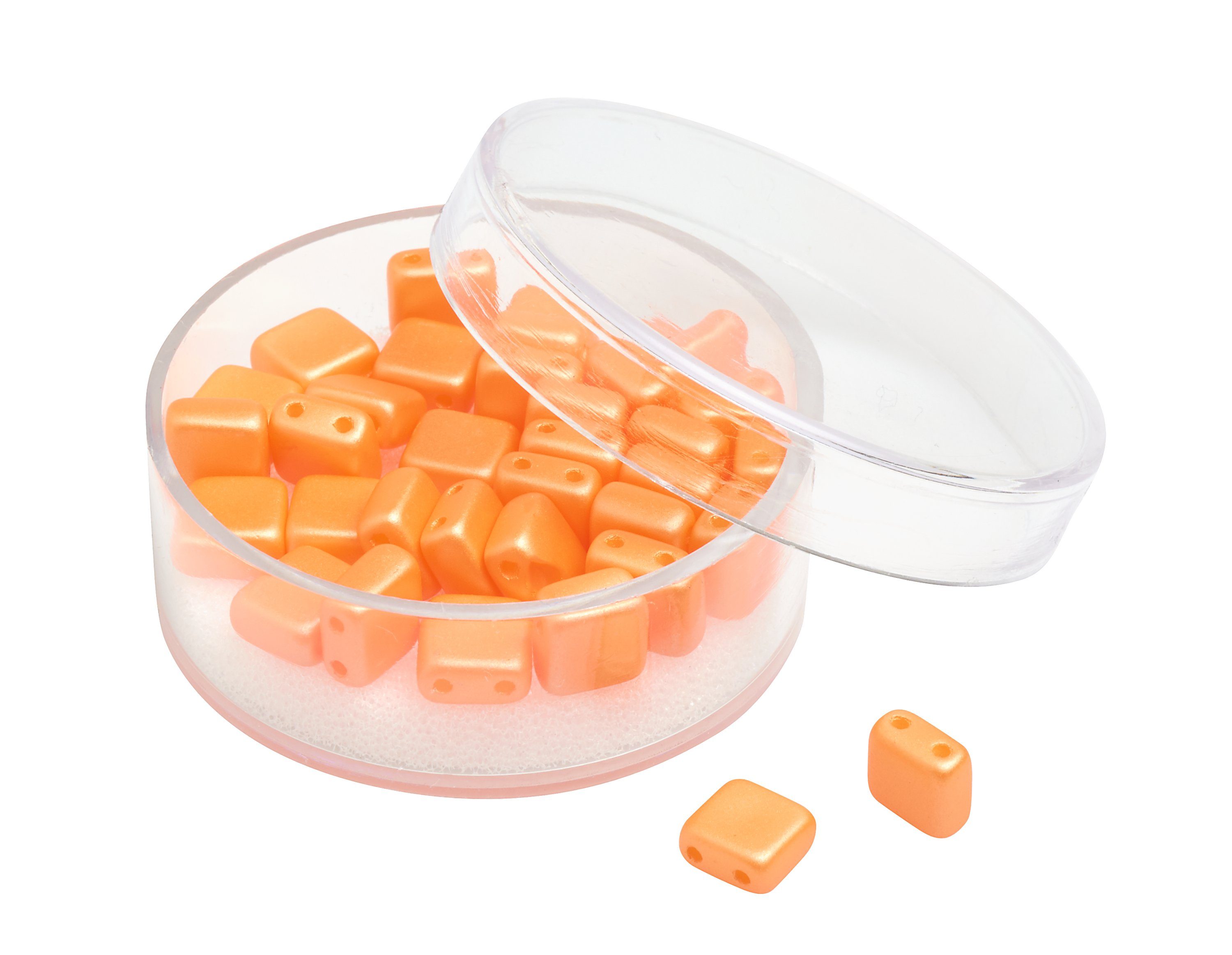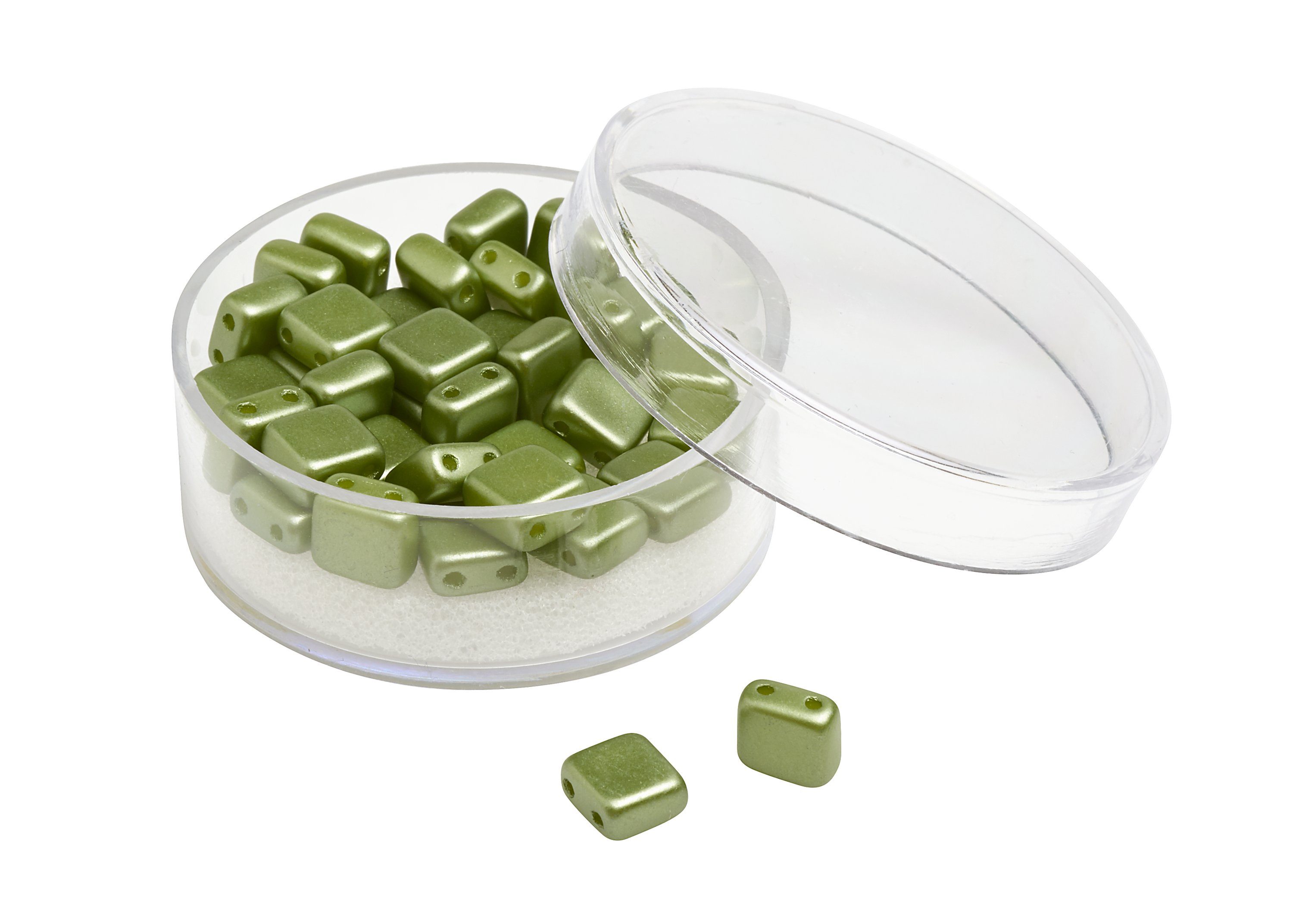 Quadratische 2-Lochperlen aus Glas in Deluxe Qualität und wunderschönen Metallic Farbtönen. Die hochwertigen Perlen verfügen über eine hohe Lichtechtheit, Abriebfestigkeit, Schweißfestigkeit und hohe Resistenz gegen Parfüm. Handwaschbar bis 40 °C. Inhalt: ca. 35 Stück.