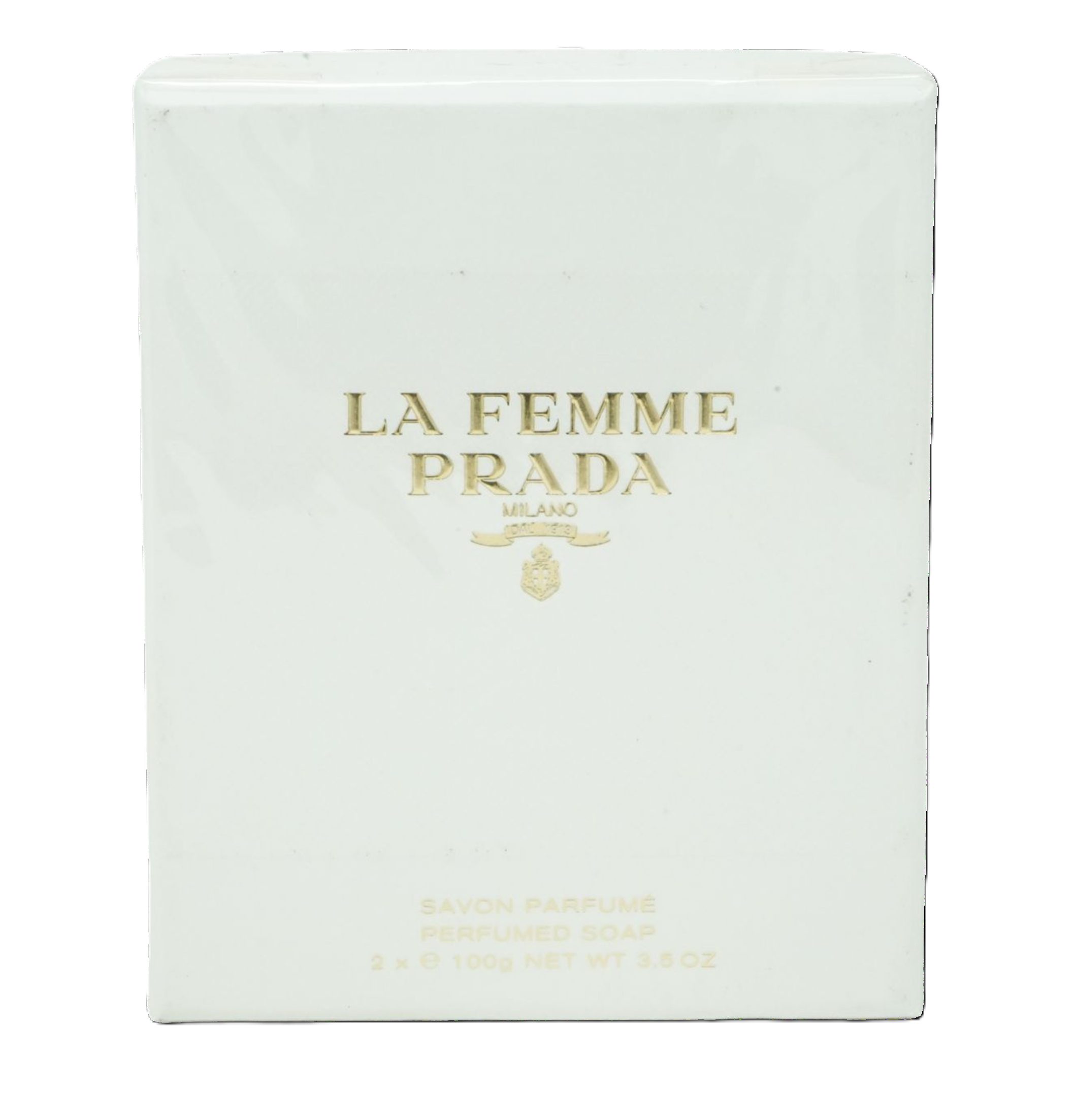 Prada La Femme Perfumed Body Soap ist eine luxuriöse Seife die sanft reinigt und gleichzeitig den eleganten Duft von Prada La Femme auf der Haut hinterlässt Die cremige Textur sorgt für ein verwöhnendes Pflegeerlebnis während der sinnliche florale Duft eine feminine und edle Note verleiht