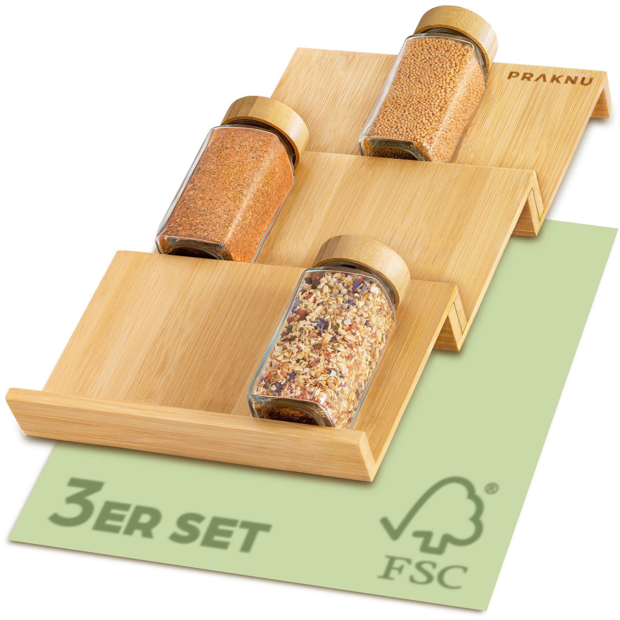 Praknu Schubladeneinsatz Bambus Gewürzregal Schublade 3er Set (3 St), Platzsparendes Schubladen Küchenzubehör - Schubladenorganizer Einsatz