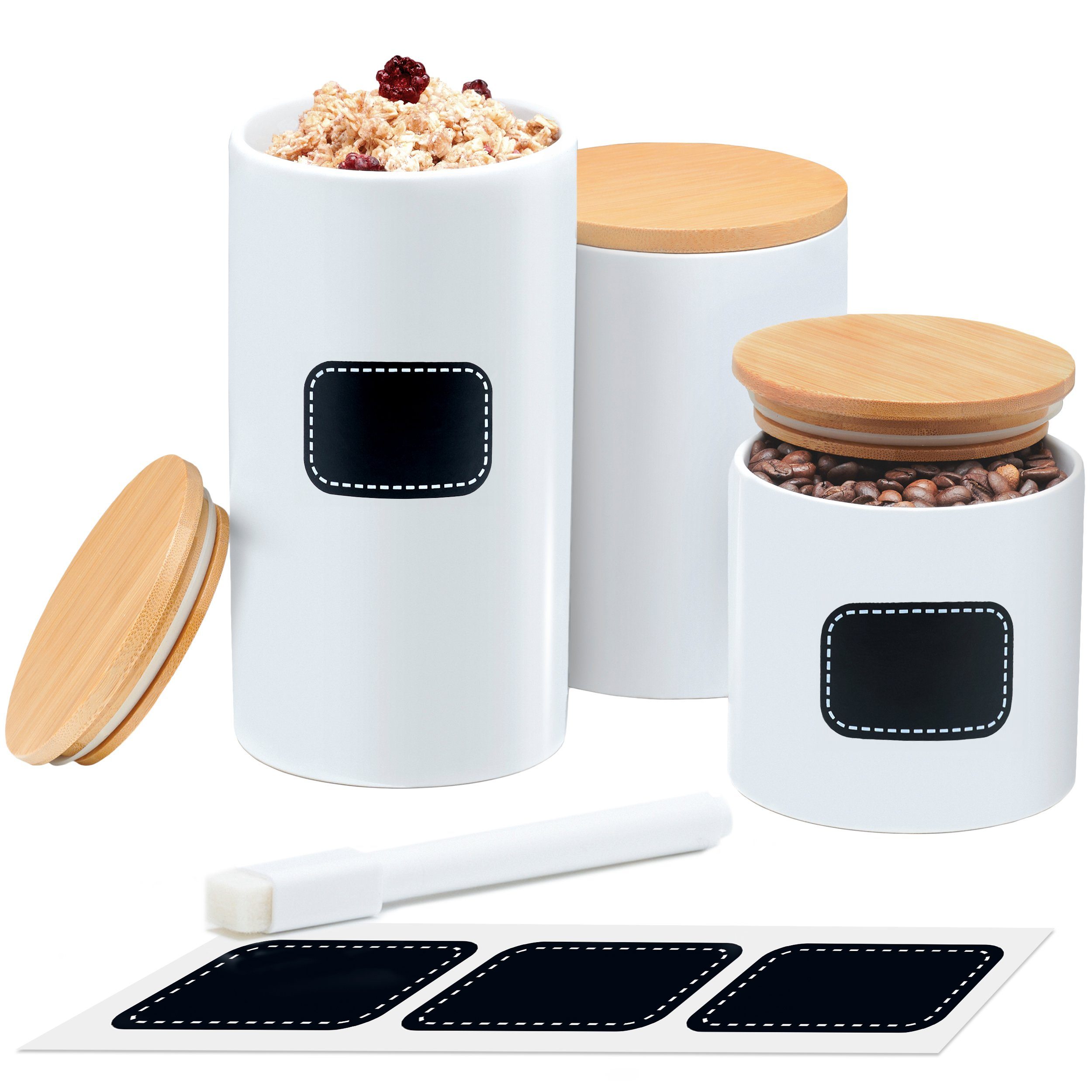3er-Set Keramik Vorratsdosen mit jeweils 3 Deckel, Etiketten und Stift