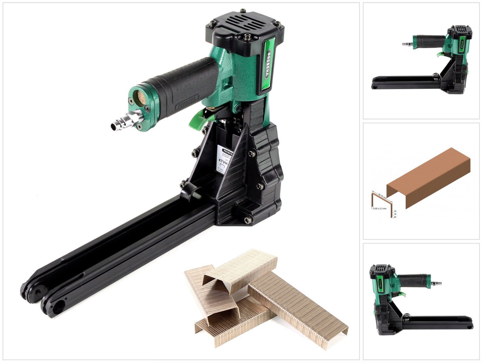 Dieser Kartonverschlusshefter aus dem Hause Prebena ist bestens geeignet für Heftklammern vom Typ B von 16 - 19 mm. Das Gerät ist auch für eine schnelle Arbeitsgeschwindigkeit geeignet, da es mit Druckluft betrieben wird. Für das saubere Verschließen von Wellpapp-Kartonagen: Deckelverschluss gefüllter und Bodenheftung leerer Faltschachteln aus Einfach- oder Doppelwellpappe geeignet.