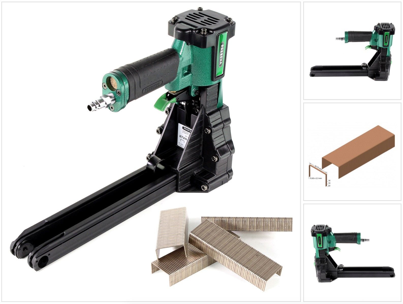 Dieser Kartonverschlusshefter aus dem Hause Prebena ist bestens geeignet für Heftklammern vom Typ B von 16 - 19 mm. Das Gerät ist auch für eine schnelle Arbeitsgeschwindigkeit geeignet, da es mit Druckluft betrieben wird. Für das saubere Verschließen von Wellpapp-Kartonagen: Deckelverschluss gefüllter und Bodenheftung leerer Faltschachteln aus Einfach- oder Doppelwellpappe geeignet.