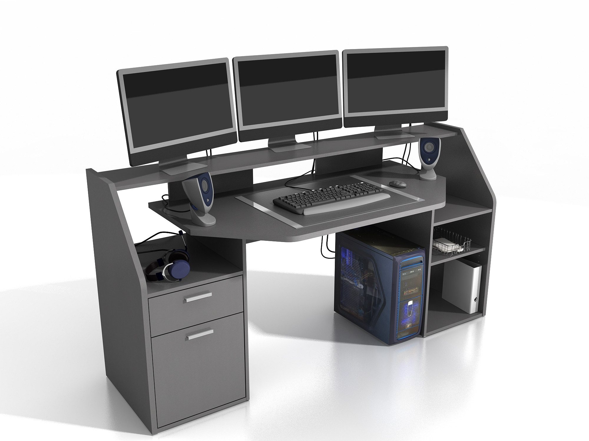 Mit großzügigen Maßen von 180 cm Breite, 92 cm Höhe und 68 cm Tiefe bietet der Gamingtisch ZOCKER 1 aus anthrazitfarbener Spanplatte ausreichend Platz für Gaming-Equipment und Zube