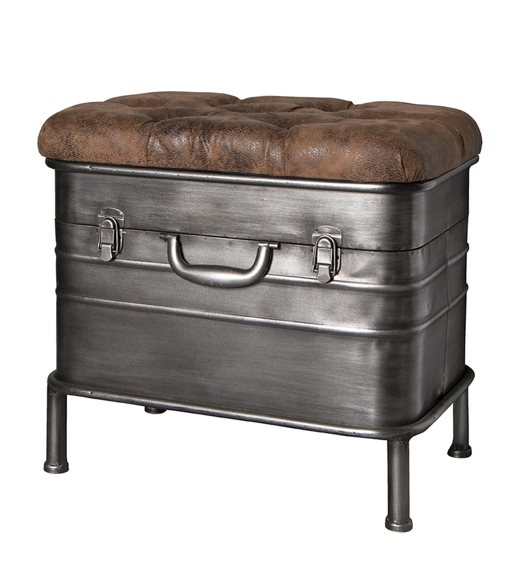 Bank aus Stahl in anthrazitfarben lackiert, Sitzpolster mit braunem Kunstlederbezug, klappbar, montiert
