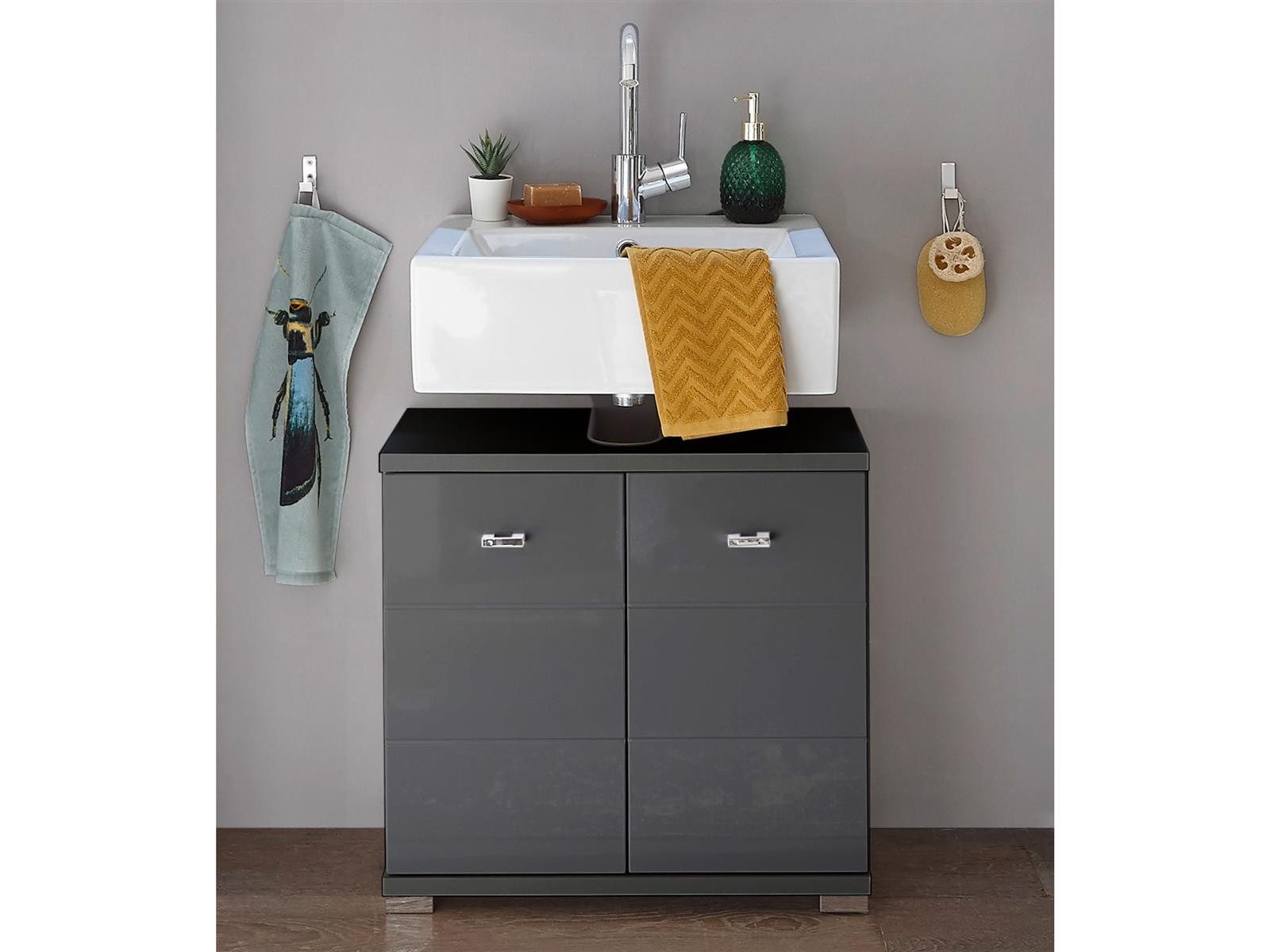Der Waschbeckenunterschrank "Peter II" ist hier mit einem Korpus in dunklem Anthrazit erhältlich, welches stilvoll mit einer Front in strahlendem Anthrazit tiefzieh Hochglanz kombiniert wird. Diese Farbgebung sorgt für eine starke Erscheinung im Badezimmer.