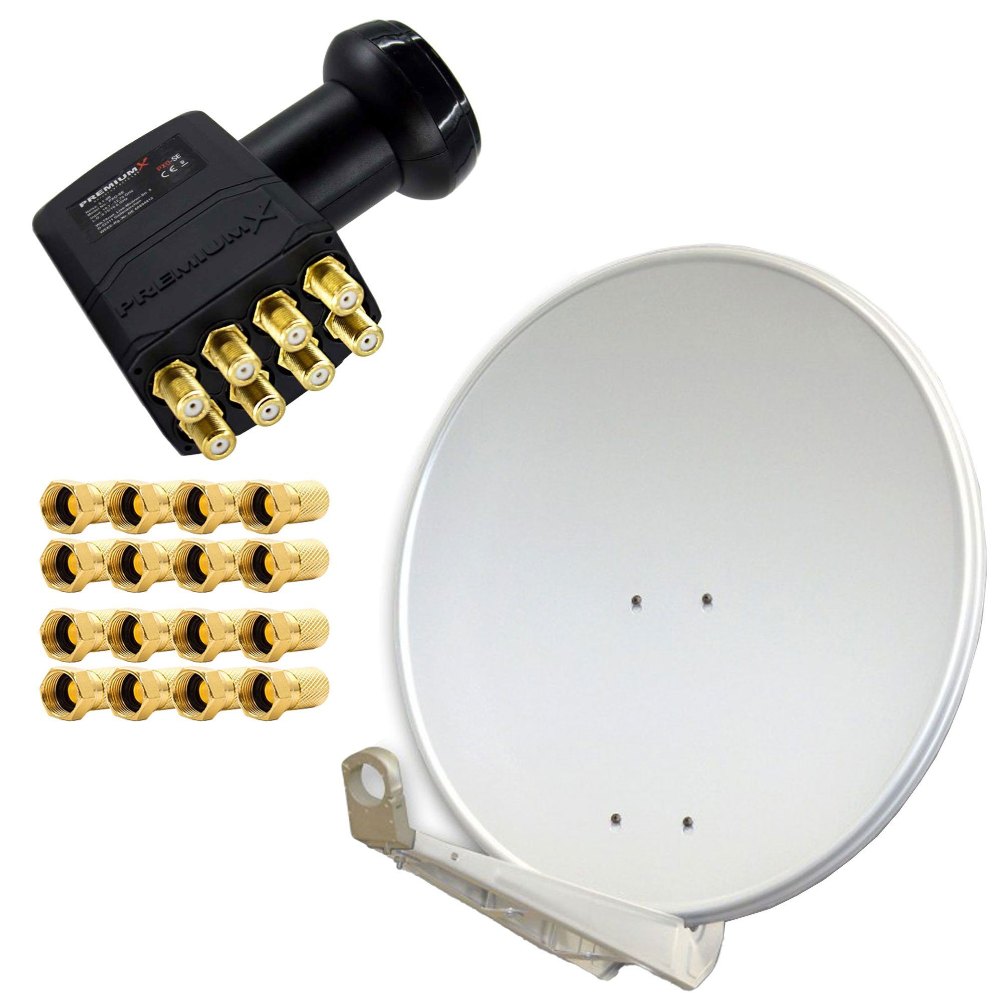 Lieferumfang | 1x PremiumX DELUXE 85cm Antenne Hellgrau1x PremiumX Octo LNB16x F-Stecker |
