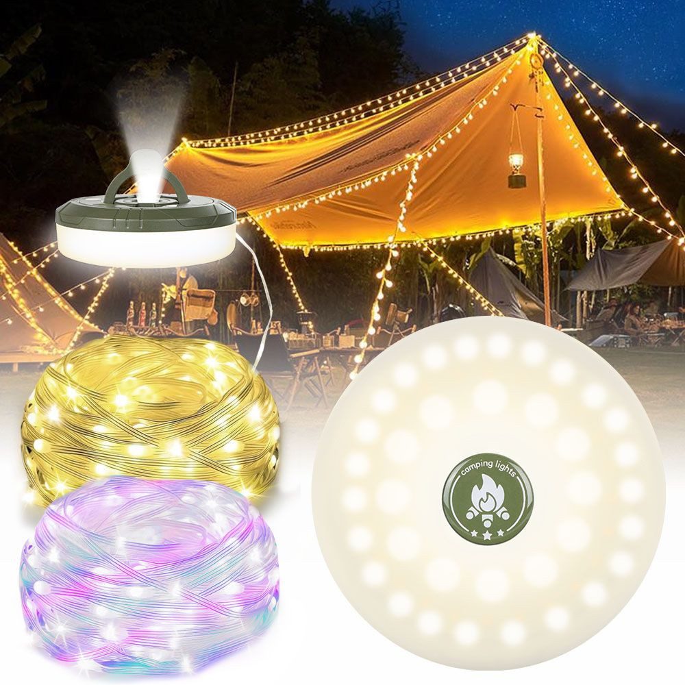 Diese vielseitige Campingleuchte vereint eine stimmungsvolle Lichterkette und eine praktische Laterne in einem Design. Mit einer Длина von 10 Metern und warmweißen LEDs schafft sie eine gemütliche Atmosphäre – ideal für romantische Abende oder gesellige Runden am Lagerfeuer.