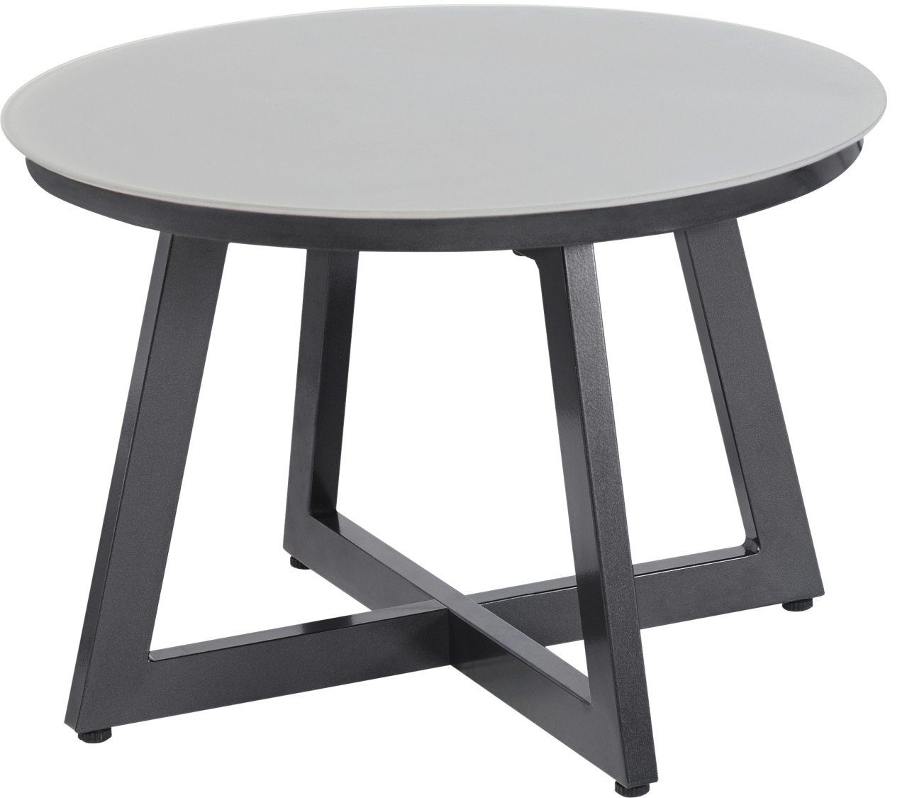 Produktdetails: Maße: 50 x 35 cm (Ø x H) | hochwertiges Aluminium-Gestell | Tischplatte 5 mm Strukturglas | Farbe: anthrazit | Belastbarkeit: 15 kg | langlebig, pflegeleicht, hochwertig, witterungsbeständig | im Winter trocken lagern |