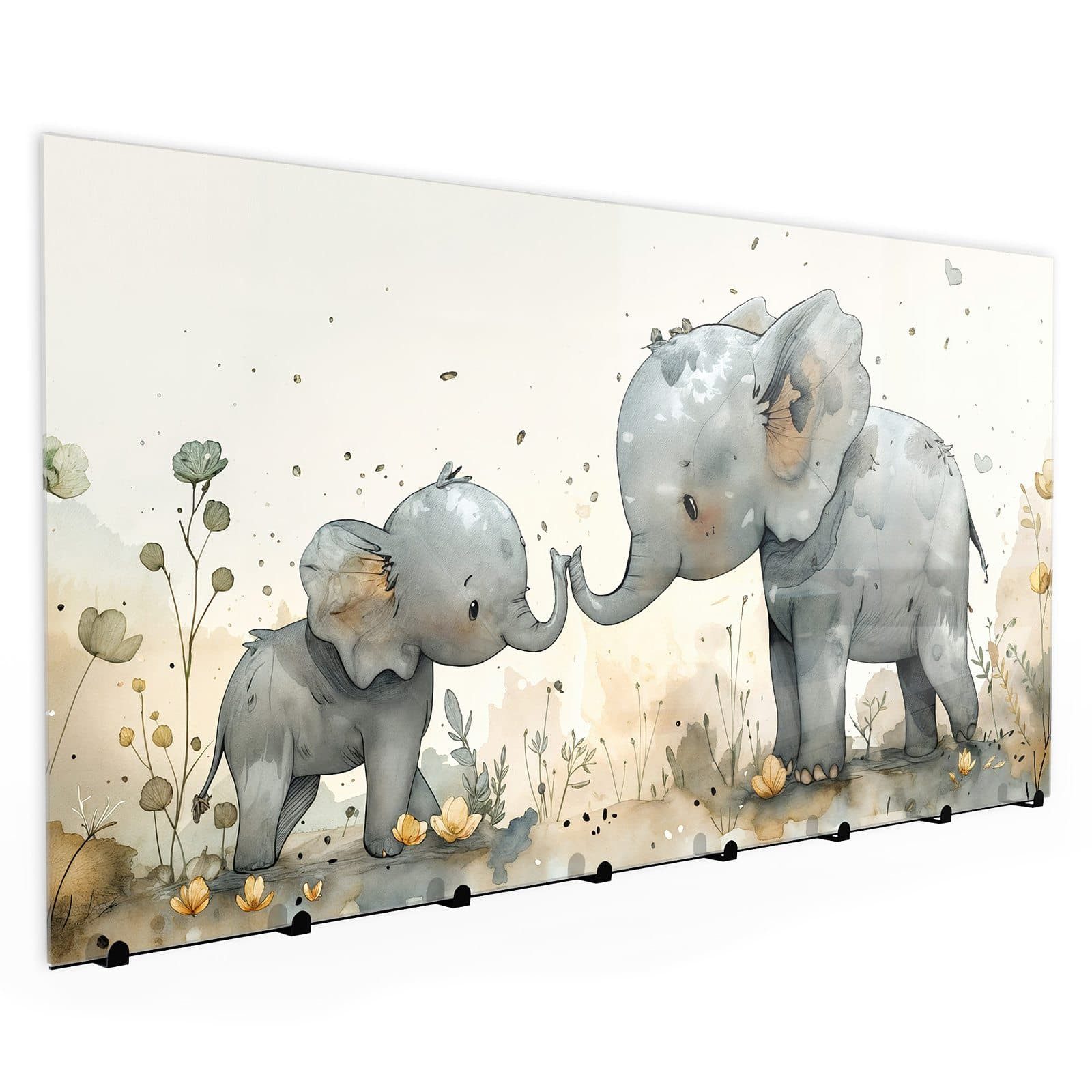 Primedeco Garderobenpaneel Kleiderhaken aus Glas Elefantenfamilie (1 St., Inkl. Magnete, Stifte und Montagematerial), Magnetisch & Beschreibbar