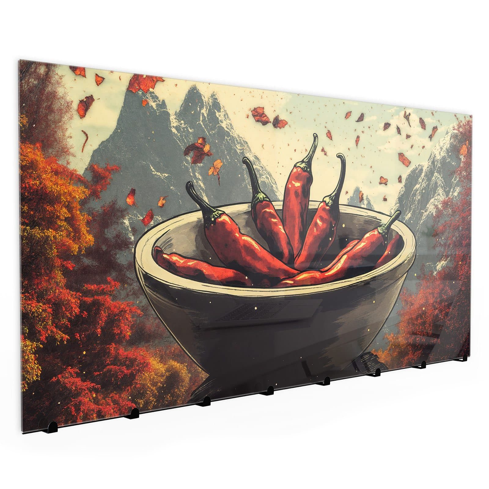 Primedeco Garderobenpaneel Kleiderhaken aus Glas Frische Chilischoten (1 St., Inkl. Magnete, Stifte und Montagematerial), Magnetisch & Beschreibbar