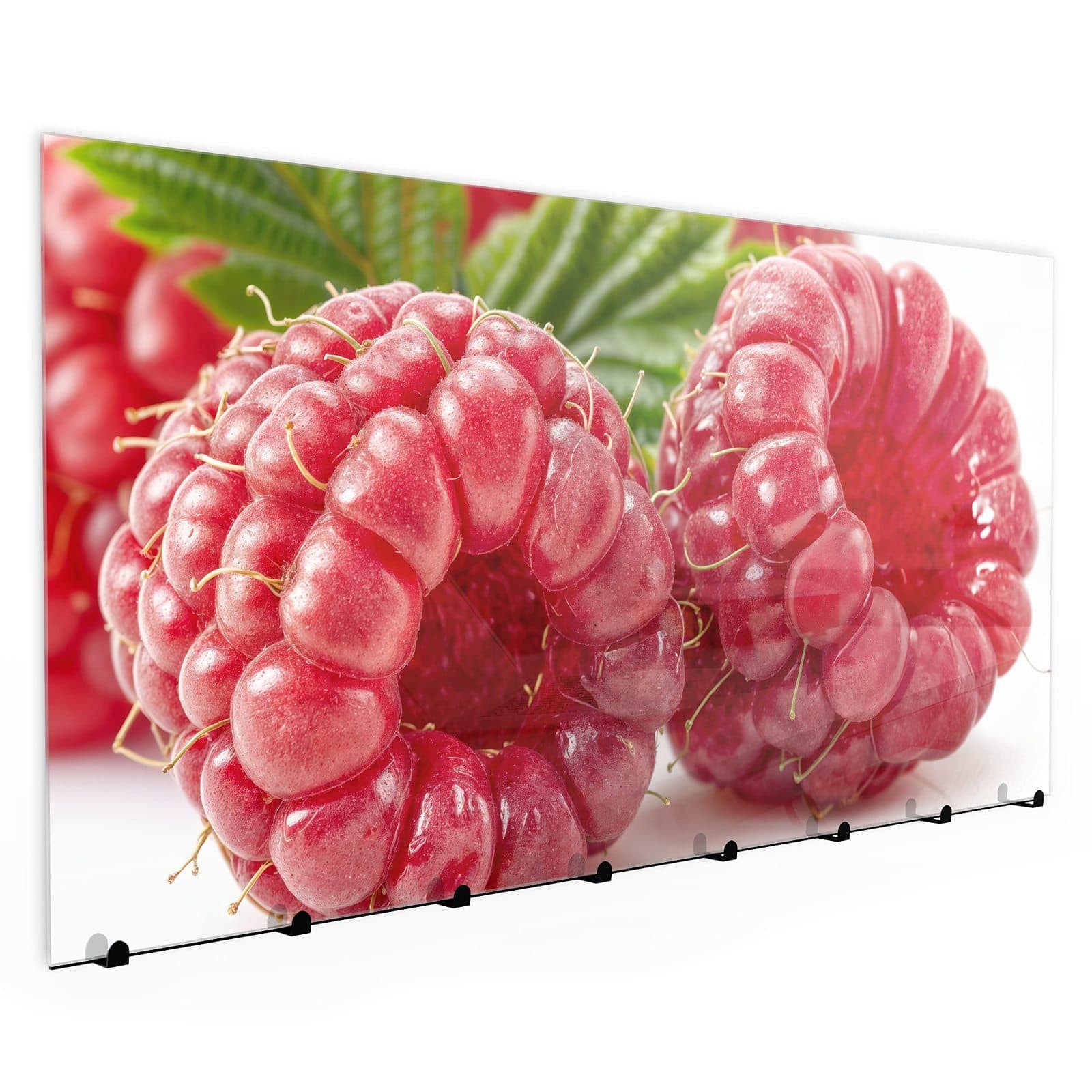 Primedeco Garderobenpaneel Kleiderhaken aus Glas Frische Himbeeren (1 St., Inkl. Magnete, Stifte und Montagematerial), Magnetisch & Beschreibbar