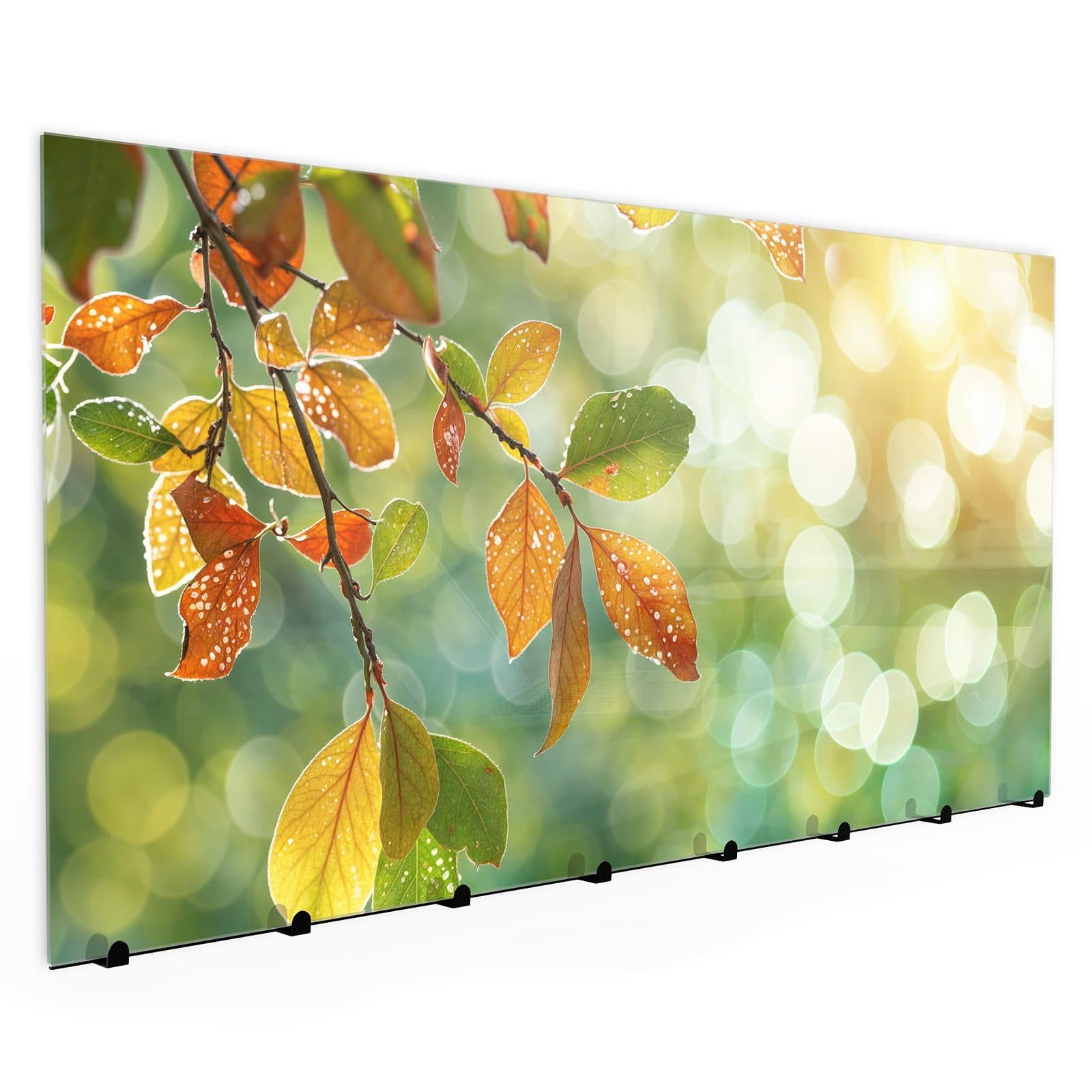 Primedeco Garderobenpaneel Kleiderhaken aus Glas Herbstlaube Lichtspiel (1 St., Inkl. Magnete, Stifte und Montagematerial), Magnetisch & Beschreibbar