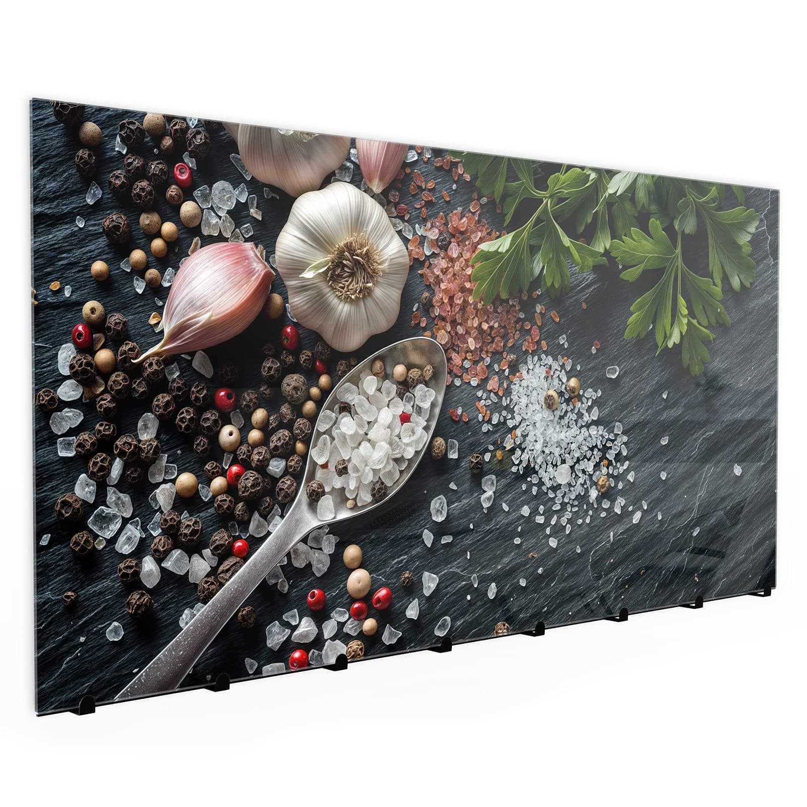 Primedeco Garderobenpaneel Kleiderhaken aus Glas Küchenzutaten (1 St., Inkl. Magnete, Stifte und Montagematerial), Magnetisch & Beschreibbar