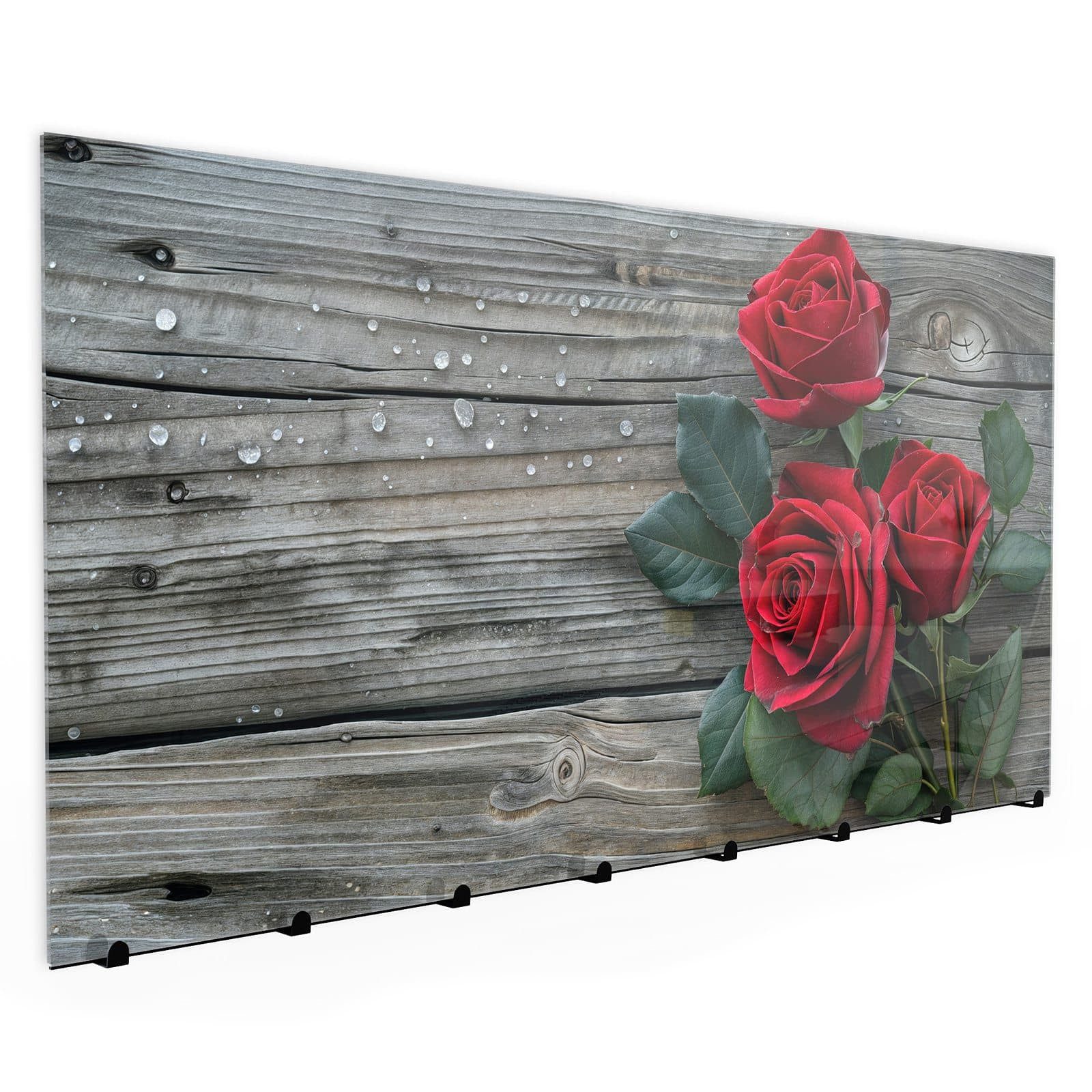 Primedeco Garderobenpaneel Kleiderhaken aus Glas Romantische Rosenherzen (1 St., Inkl. Magnete, Stifte und Montagematerial), Magnetisch & Beschreibbar