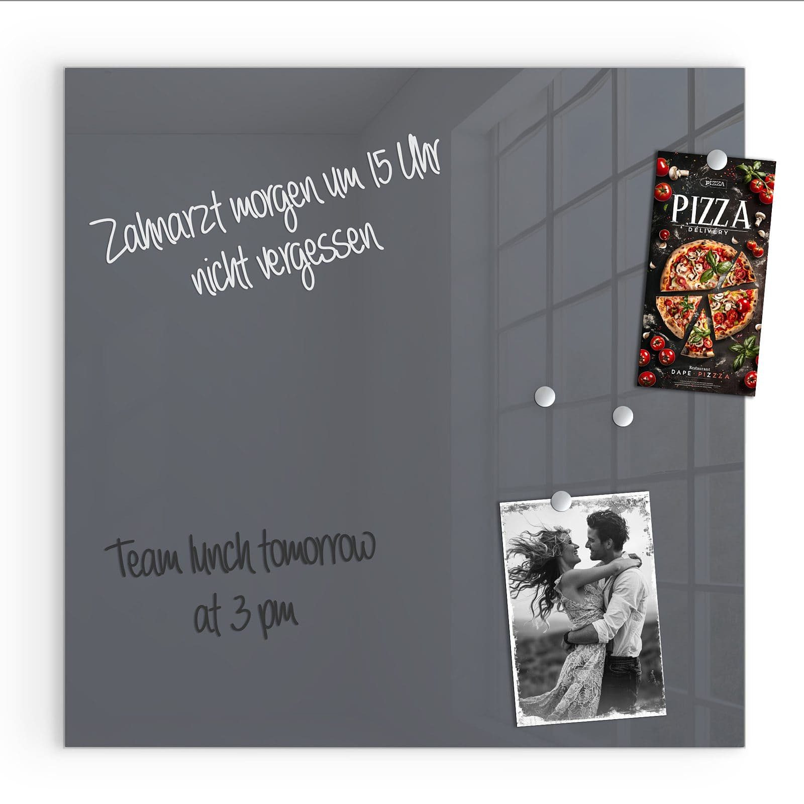.Ausstattung | Enthält 2 Neodym-Magnete, 1 Stift, 1 Reinigungstuch; magnetisch haftend, beschreibbar, aus 4 mm starkem Sicherheitsglas (ESG) |