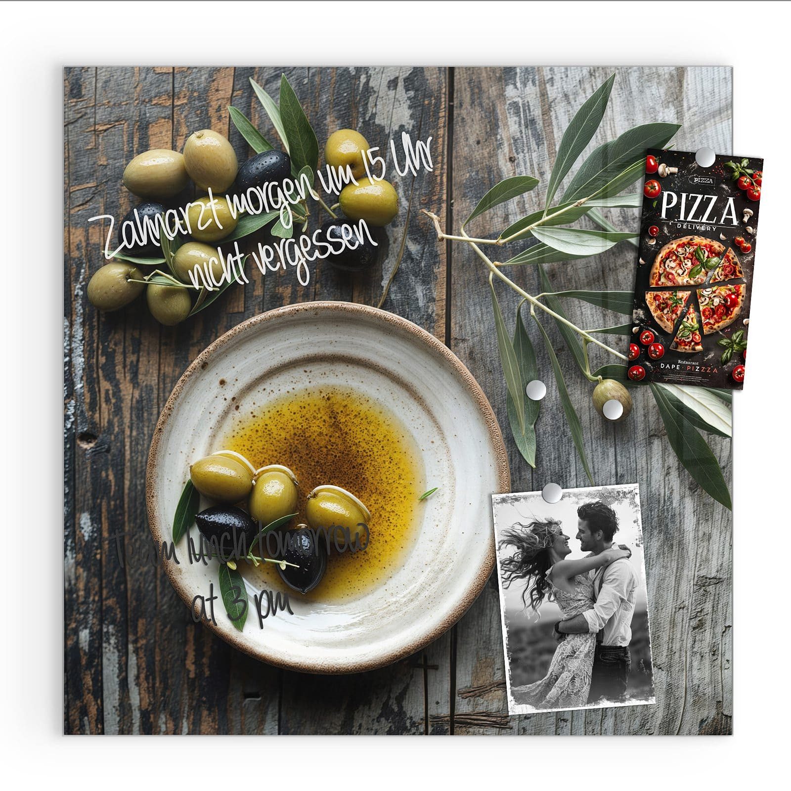 Mit einer Размер von 30x30 cm ist diese Magnetpinnwand mit dem Motiv Oliven auf Teller die ideale Lösung für Ihre Notizen, Fotos oder als dekoratives Element in Ihrem Zuhause. Die rückseitigen Ausbuchtungen sorgen für einen eleganten Schwebeeffekt, der den Raum optisch aufwertet.